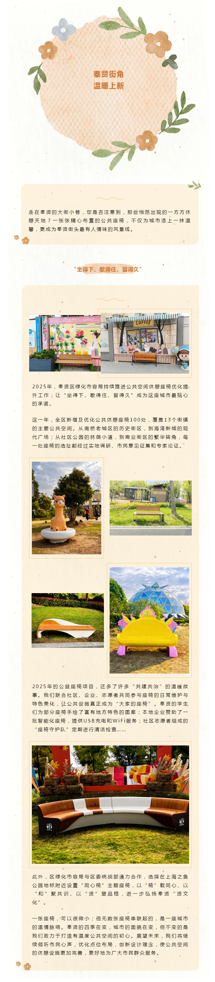 奉贤街角,温暖上新!新一批公共休憩座椅成为街边新风景