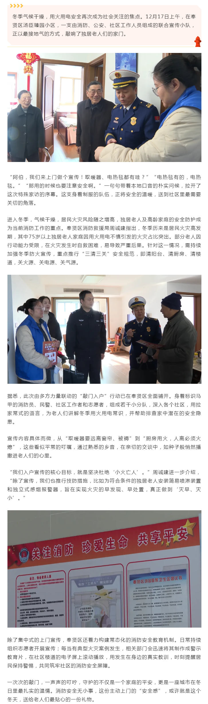 “阿伯,电热毯用时要当心啊!”这个冬天把“消防课”送到老人床头边