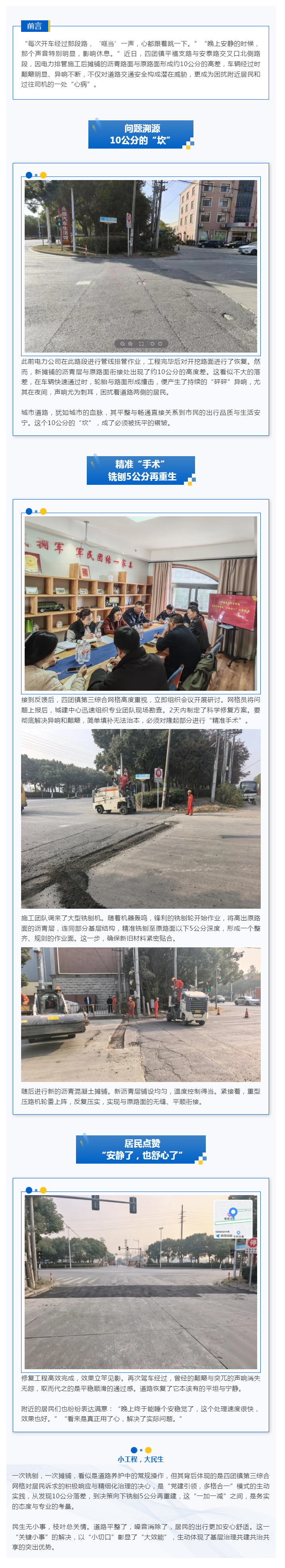 车流呼啸中的“路障”,四团的他们用铣刨机“治愈”了居民的耳朵