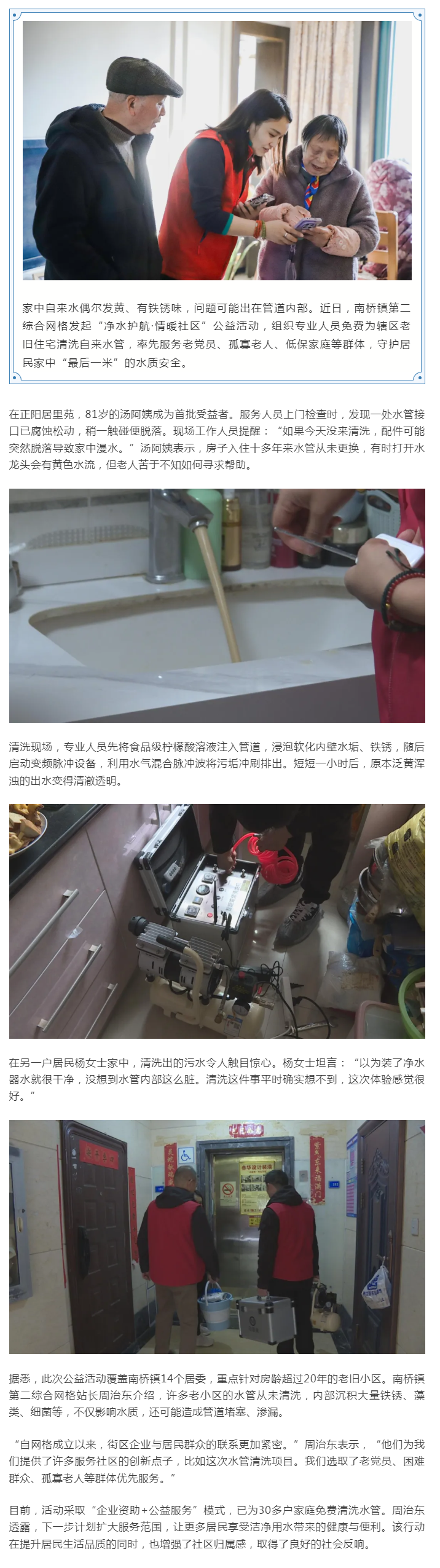 为老旧水管“洗胃清肠”!南桥镇发起“净水护航”公益行动