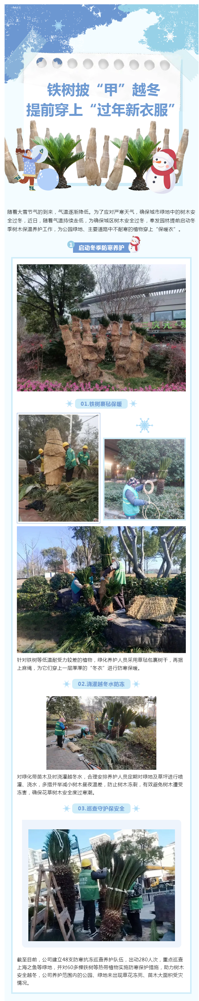 铁树披“甲”越冬,提前穿上“过年新衣服”