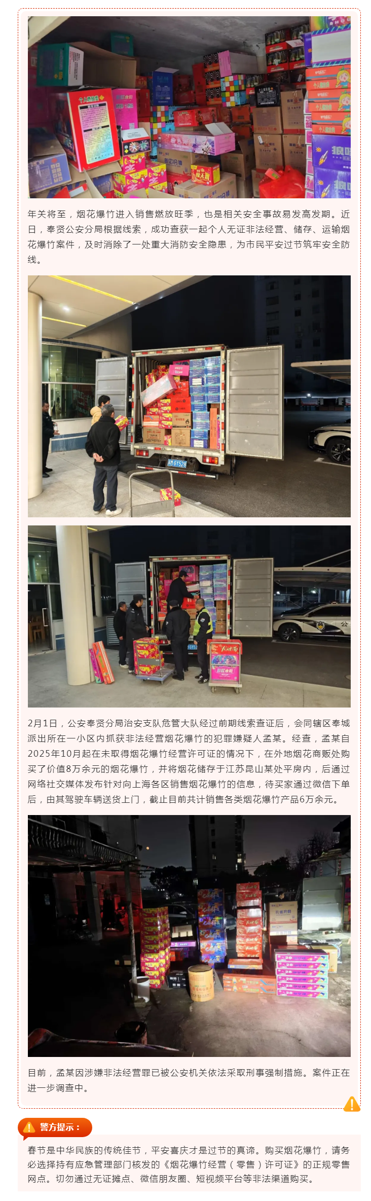 奉贤警方雷霆出击,24小时内破获一起非法经营烟花爆竹案