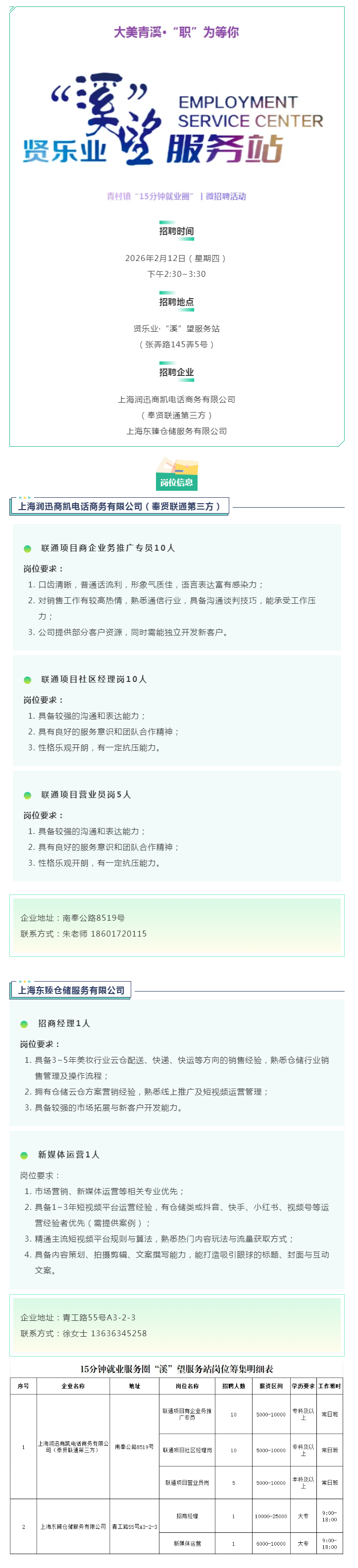 最高月薪25000元!青村镇贤乐业·“溪”望服务站“职”等你来!