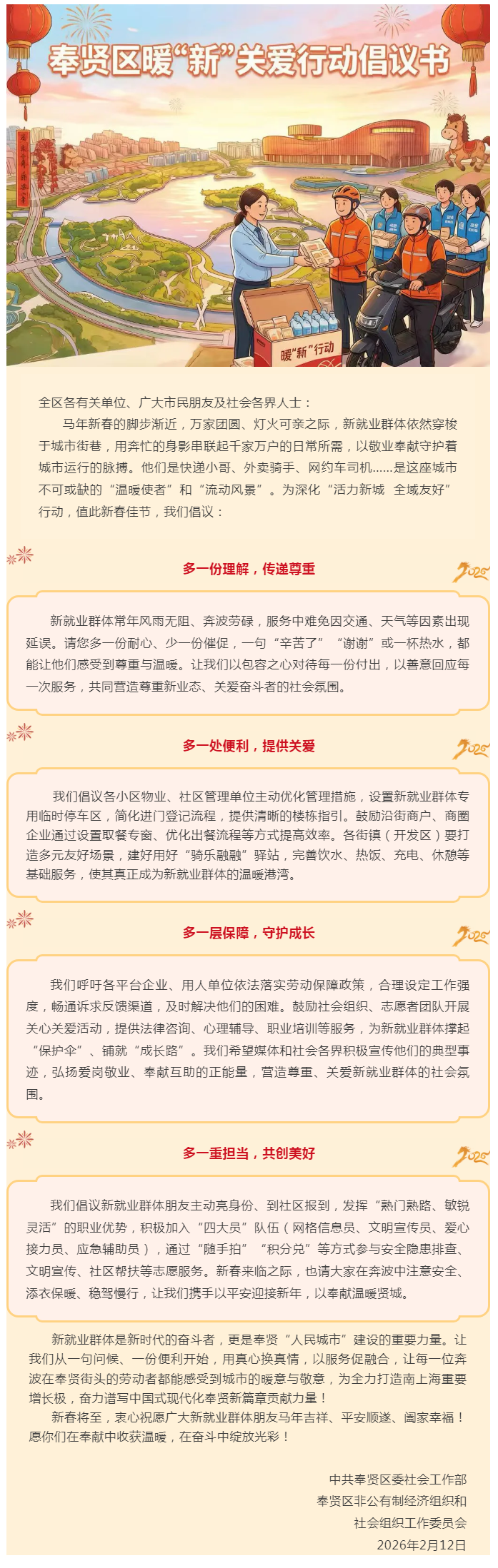奉贤区暖“新”关爱行动倡议书