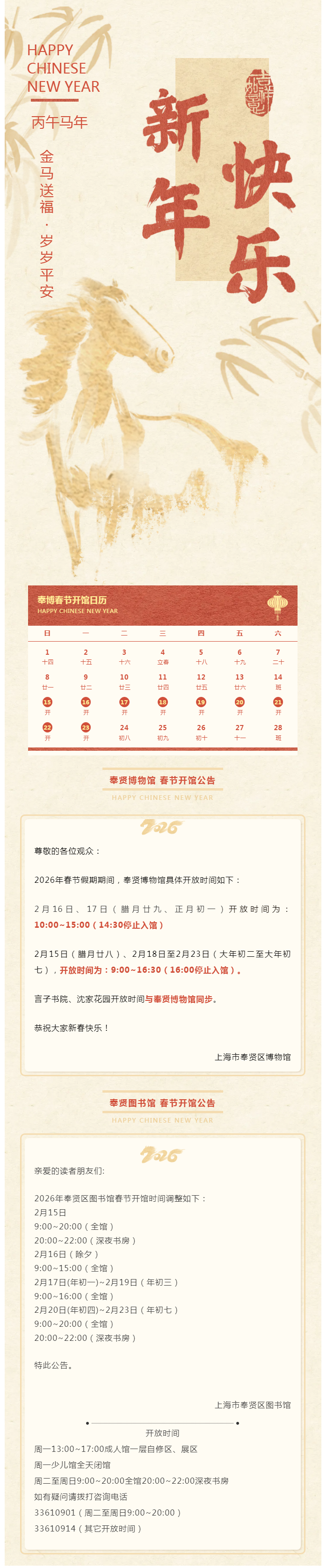 奉贤博物馆、奉贤图书馆新春开馆情况