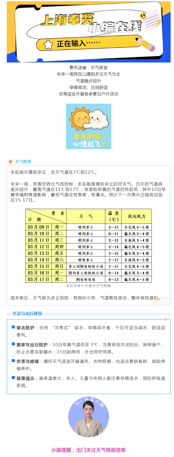 春日好天气营业中!未来一周晴好相伴,春雨稍后赴约丨“上海奉贤”小编在线
