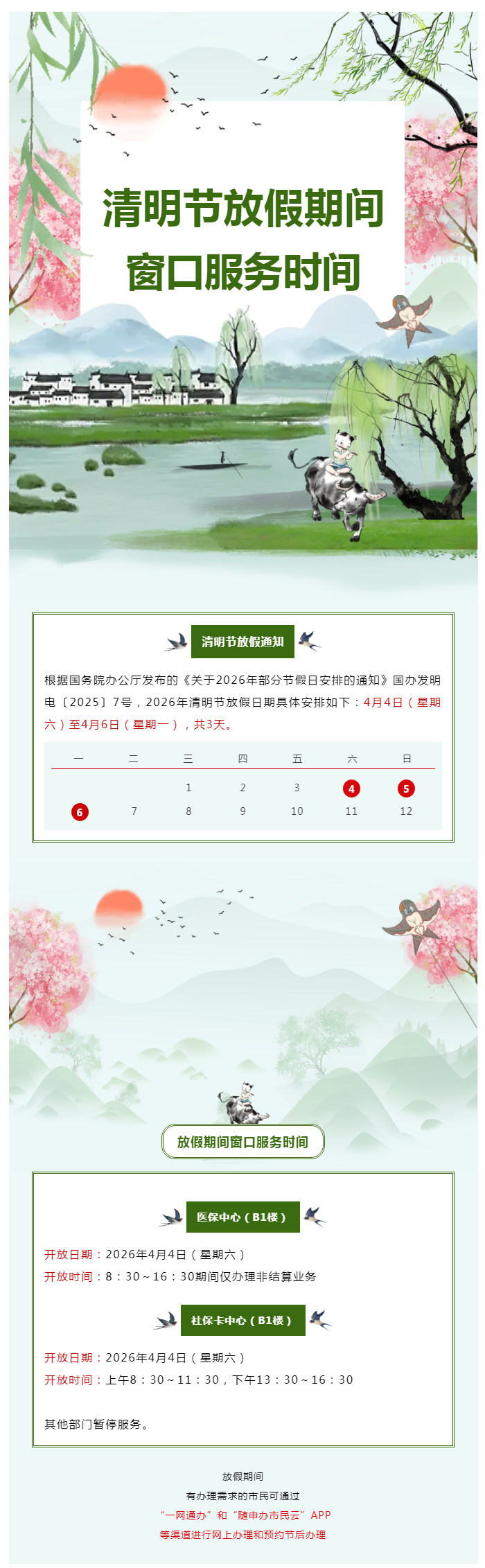 奉贤政务服务中心清明节放假期间窗口服务时间,点击查看→