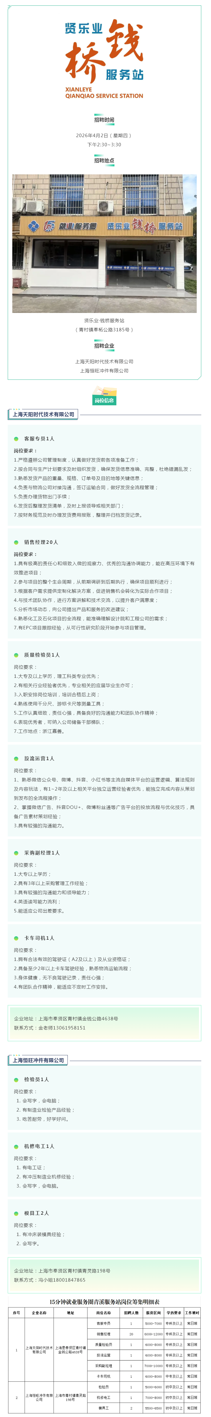 最高月薪12000元!青村镇贤乐业·钱桥服务站“职”等你来!