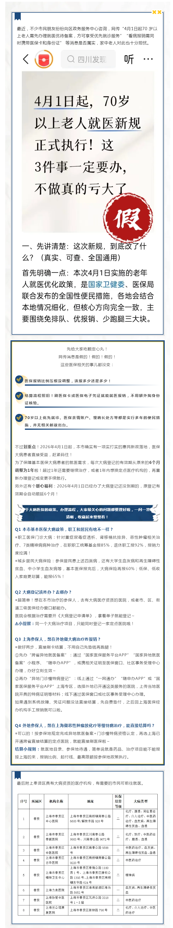 4月1日起老人看病有新规定?假!但这项利好是真的!