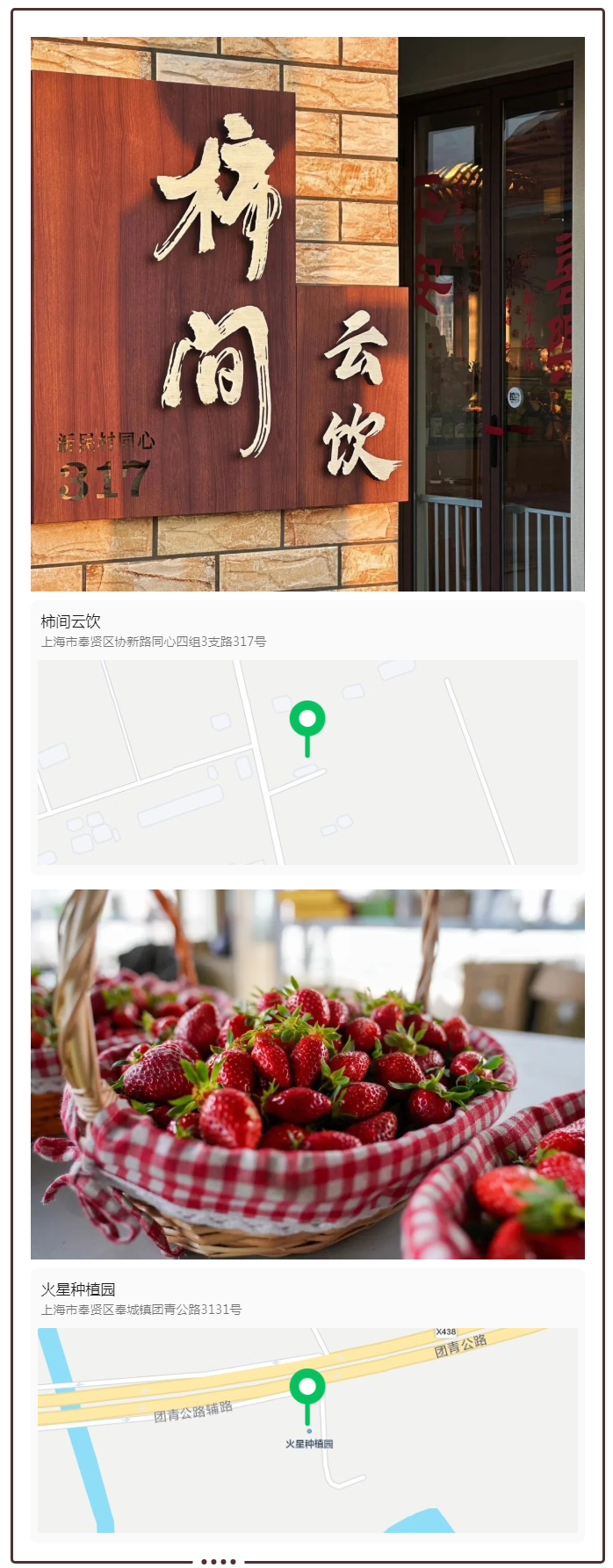 青年夜校的治愈与香甜仍在回味,闲暇时不妨循着这份美好再出发。到柿间云饮小坐,在咖啡与草木清香里,邂逅属于奉城的慢时光,也可以奔赴火星种植园,趁着春日正好、草莓尚鲜,采摘一口专属于这个季节的清甜与浪漫。