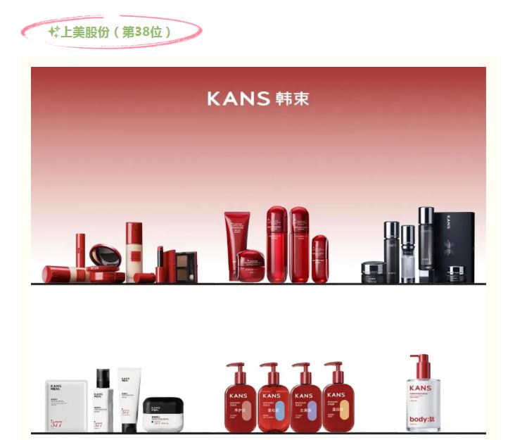 强势跃升11位,成为本次榜单中国企业最大赢家。2025年美妆销售额达91.8亿元,同比增长34.8%,增速位居国内上榜企业榜首。旗下韩束品牌稳居抖音渠道头部,贡献集团超80%营收,一叶子、红色小象协同发力,婴童功效品牌newpage一页实现爆发式增长,成为集团第二增长曲线。品牌全面覆盖护肤、母婴、洗护、彩妆等赛道,多品类协同发展的战略优势持续释放。