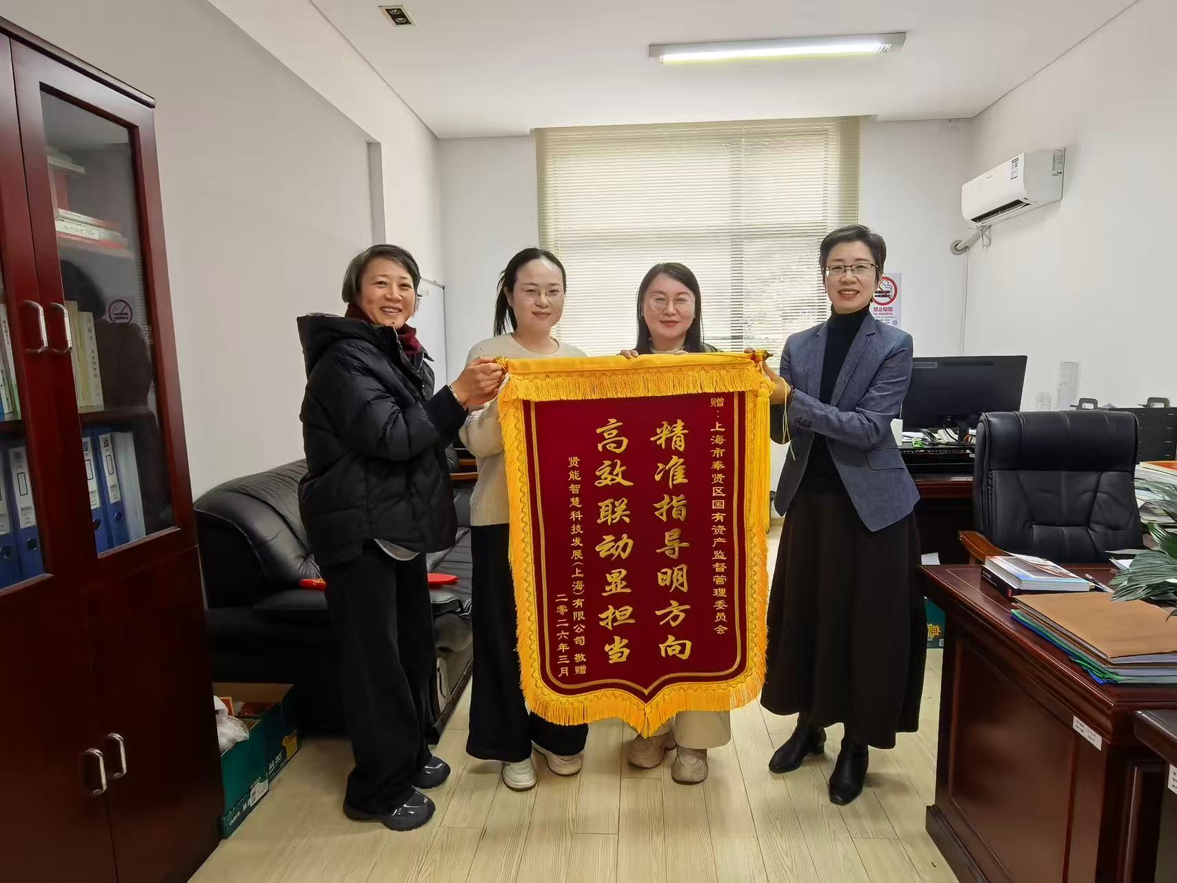 发布时间:2026-03-053月4日,奉贤区国资委收到一面印有“精准指导明方向、高效联动显担当”的锦旗。
