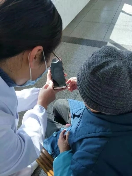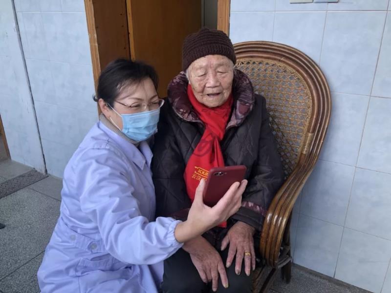 “谢绝探望”这一举措,虽然取得了家属的理解,但老人们的失落在所难免。有的郁郁寡欢、情绪低落;有的一天到晚念叨着家人什么时候来看她;有的则盯着窗外盼望着……特别是病房里的百岁老人马阿婆,平日里孝顺的儿女们天天轮流陪伴着老母亲,如今缺少了家人陪伴的她整天愁眉苦脸。护士长看在眼里、急在心里,为了解决老人们的思念之情,她主动加了老人子女们的微信,让老人天天可以和家人视频见面、聊天。