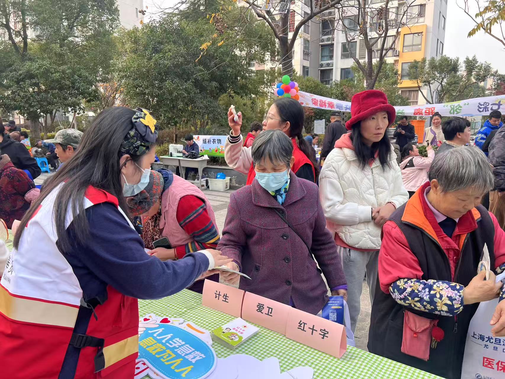 便民集市上人气爆棚,现场设有生活服务、政策宣传、健康咨询等多个实用摊位,精准对接居民日常生活中的“急难愁盼”问题。红十字志愿服务团队也积极参与到此次活动中,重点开展急救知识宣传普及工作。志愿者通过发放急救宣传资料、现场讲解演示等方式,向居民普及海姆立克急救法、心肺复苏(CPR)、常见外伤处理等实用急救知识。