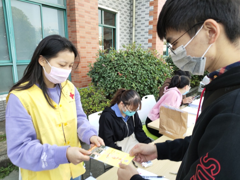 此外,红十字志愿者也借此机会向献血者发放造血干细胞捐献、遗体(角膜)捐献等宣传手册,让更多人了解到红十字会。