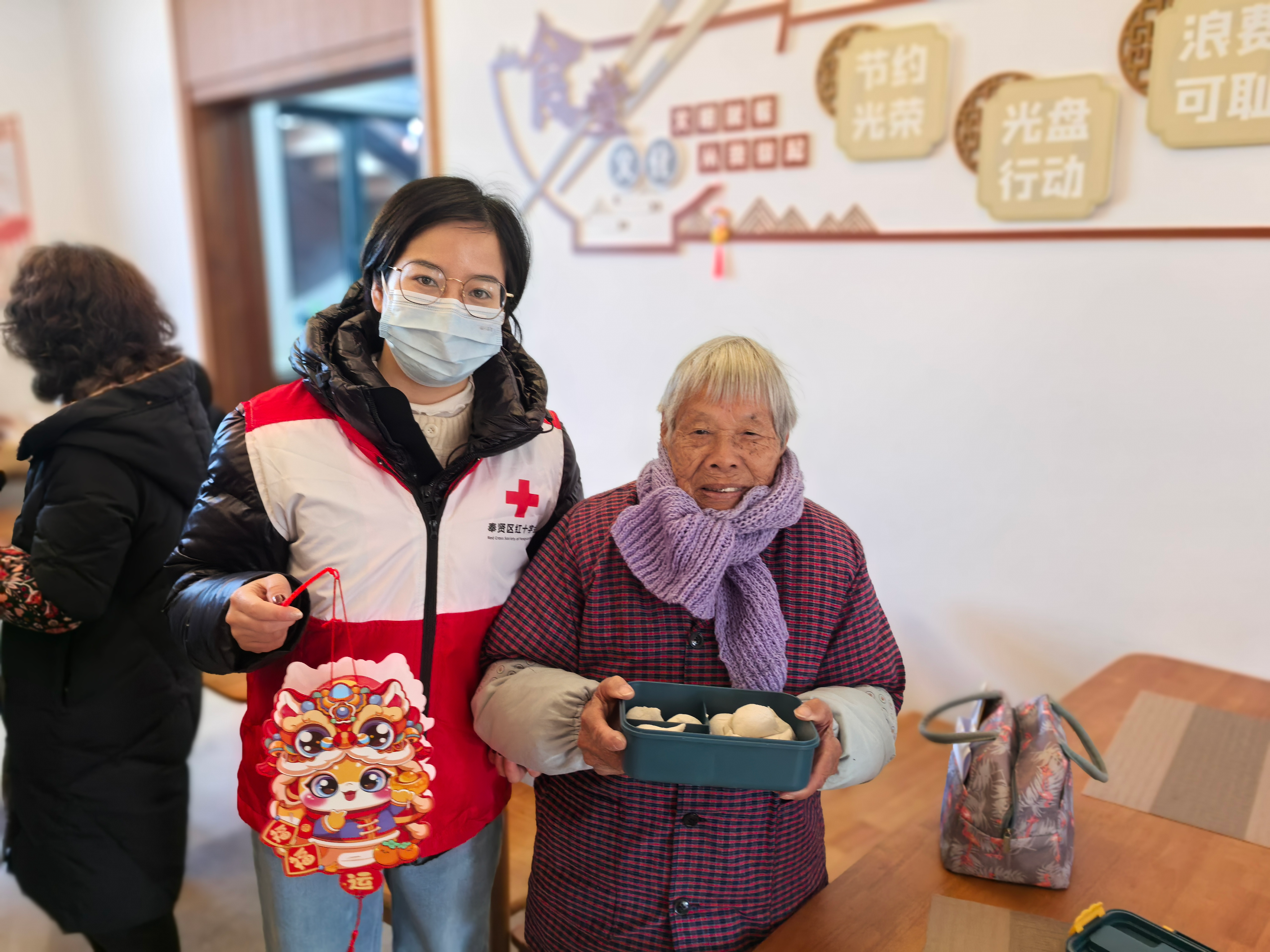 活动现场,红十字志愿者们一同制作汤圆,有的揉面团、有的调馅料、有的包汤圆,动作娴熟,配合默契。香甜软糯的汤圆出锅后,志愿者们挨个将其送到老年居民和小朋友手中。大家围坐一堂,边吃边聊、笑容满面。此外,志愿者们还将汤圆分装好,一一送至独居老人家中,为他们送上节日的关怀与温暖。