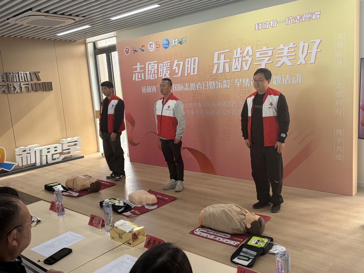 活动现场,来自社区卫生服务中心的红十字救护培训师资详细讲解并演示了AED的使用方法与急救流程,并组织志愿者进行实操练习,有效提升了大家在突发事件中的自救互救能力。