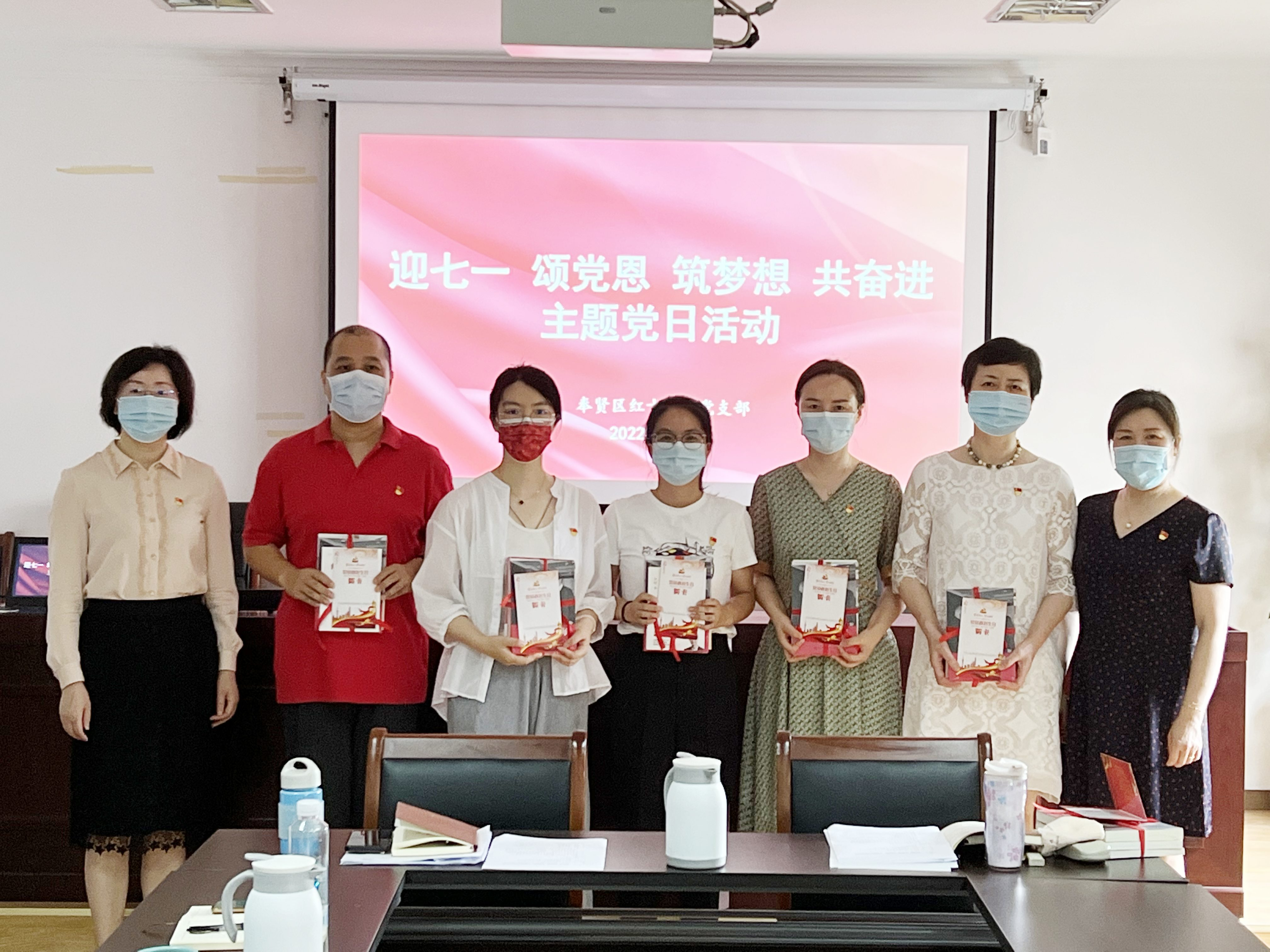 党组书记沈俭英、党支部书记王燕向全体党员赠送一张政治生日贺卡和《习近平在上海》《当好改革开放的排头兵——习近平上海足迹》等红色书籍作为政治生日礼物。
