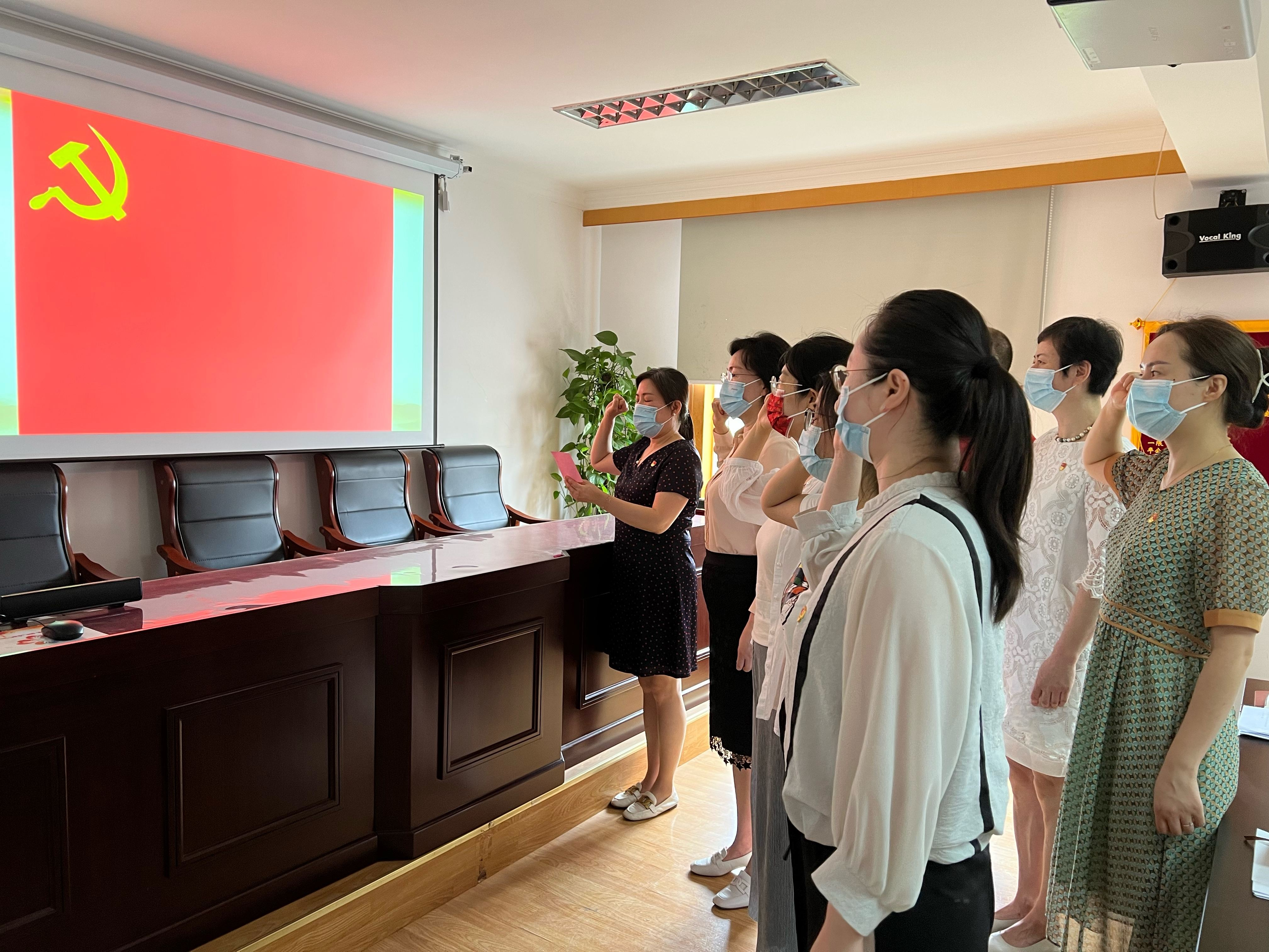全体党员在党支部书记王燕的领誓下,面向党旗、举起右手,重温入党誓词。