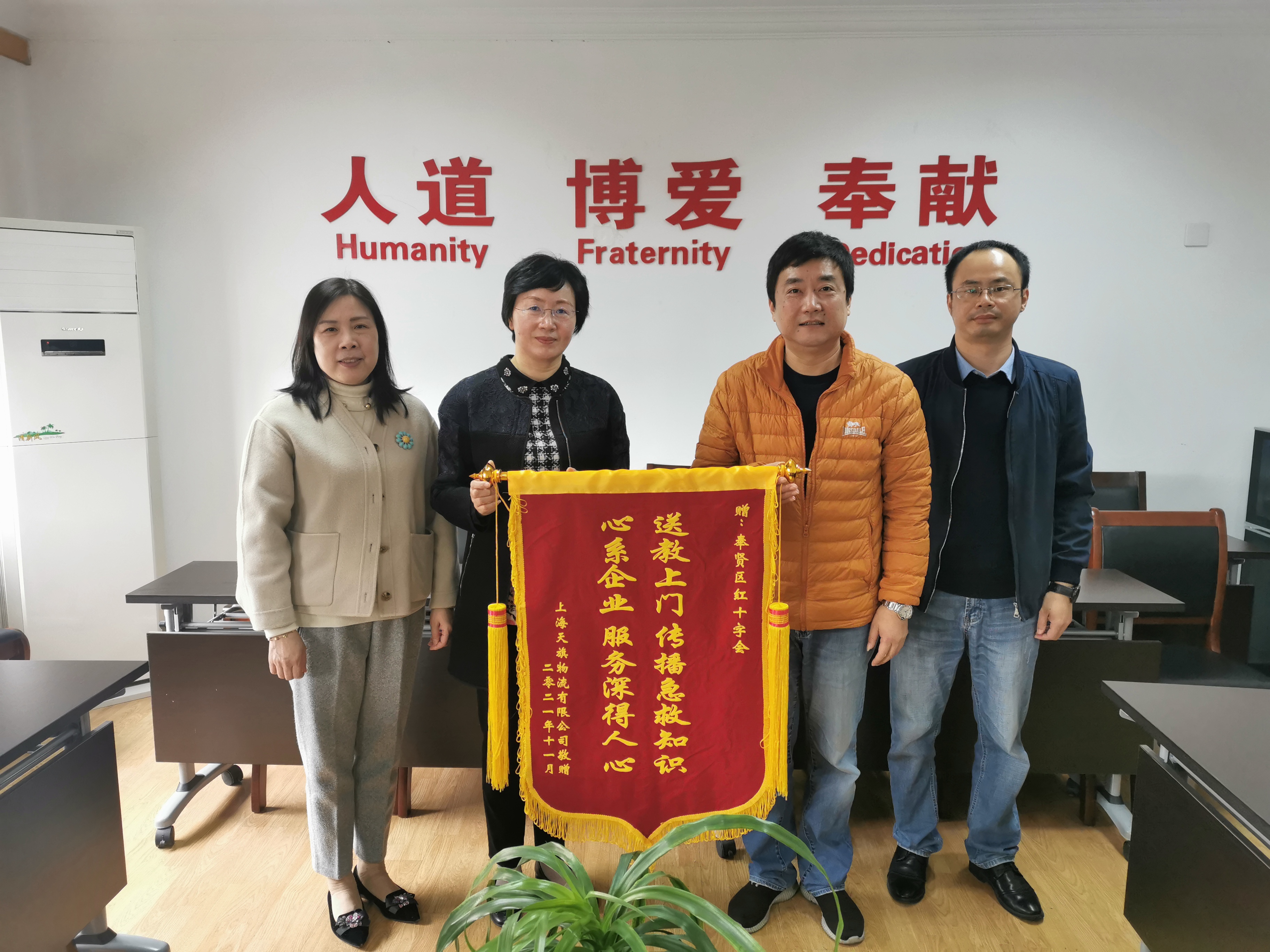区红十字会党组书记、常务副会长沈俭英,党组成员、副会长王燕接待了他们。交谈时,上海天旗物流有限公司副总经理徐伟表示,由于场地不定、名额不足、疫情防控等多种原因,企业原来的红十字救护员证面临过期且复训工作开展困难,在9月17日的“早餐圆桌会”上提出后,区红十字会非常重视,立即行动,针对企业是危化品运输行业的特殊性,根据企业需求和生产安排等实际条件量身定制了救护培训课程,解决了企业的难题,为表谢意,特地制作了锦旗,感谢奉贤区红十字会的帮助。