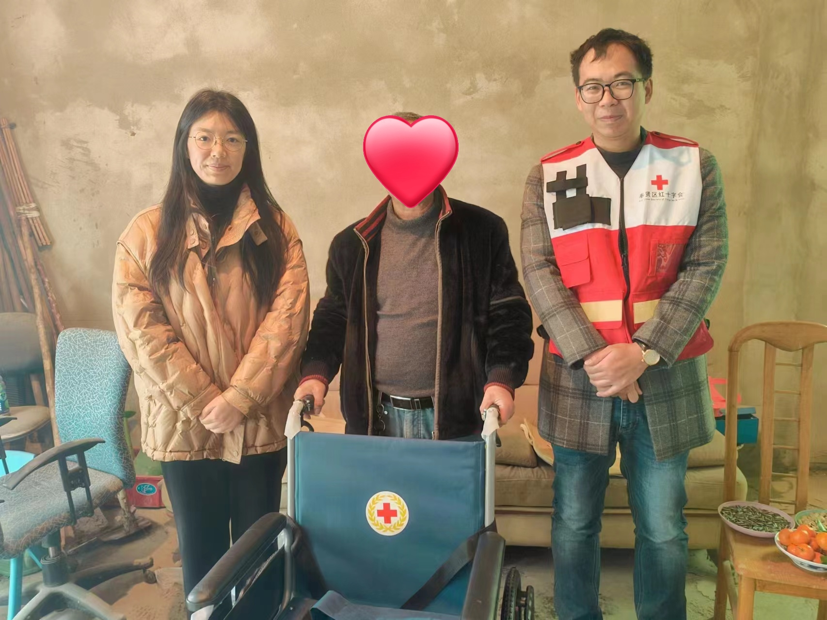1月31日上午,区红十字会党员干部来到西渡街道南渡村,为行动不便的90岁高龄老党员丁爷爷送去了一辆崭新的轮椅车,并向家属了解老人的生活情况,祝福老人新春快乐、吉祥如意。