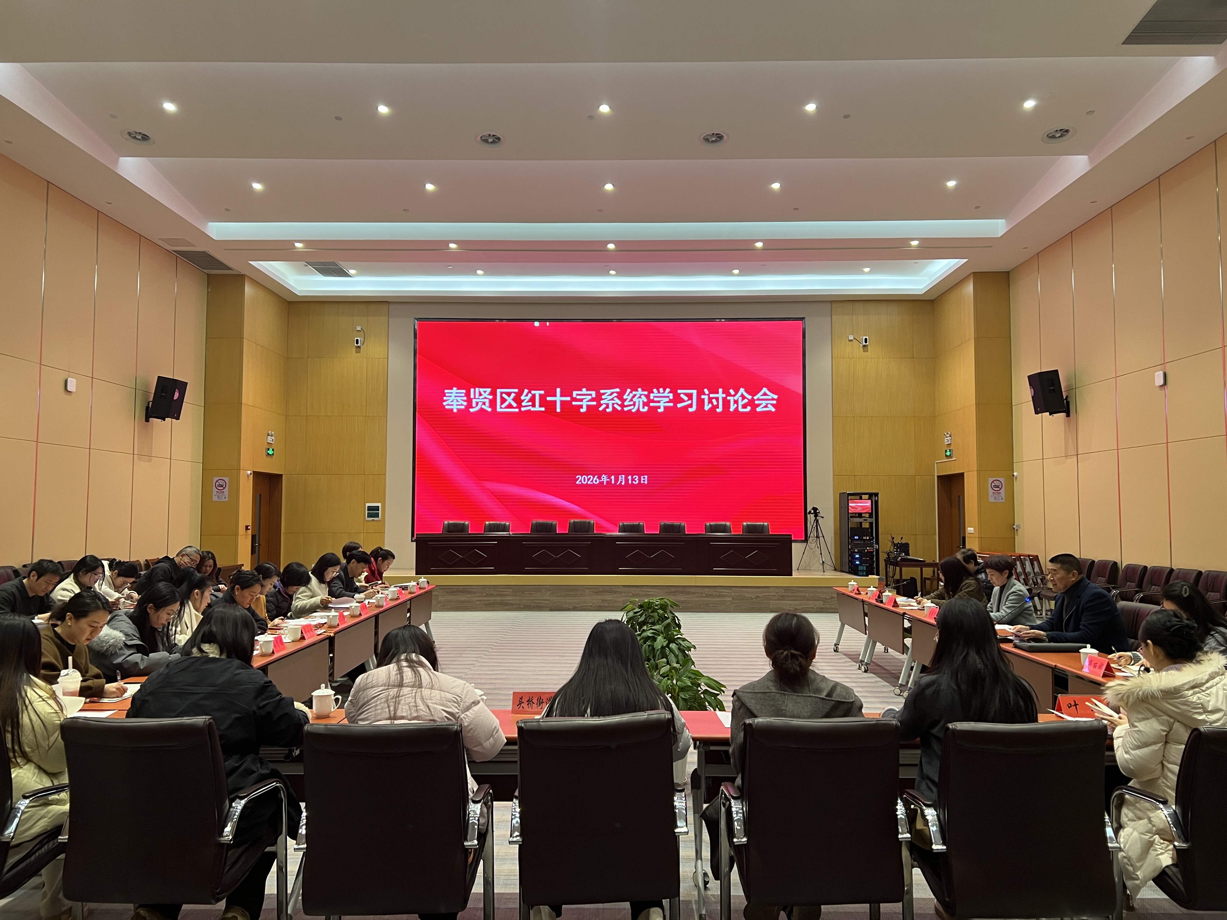 发布时间:2026-01-161月13日,奉贤区红十字会举办全区红十字系统学习讨论会,总结回顾2025年工作情况、研究部署2026年工作重点。区红十字会领导班子、机关全体人员、各街镇红十字会常务副会长及秘书长等参加。