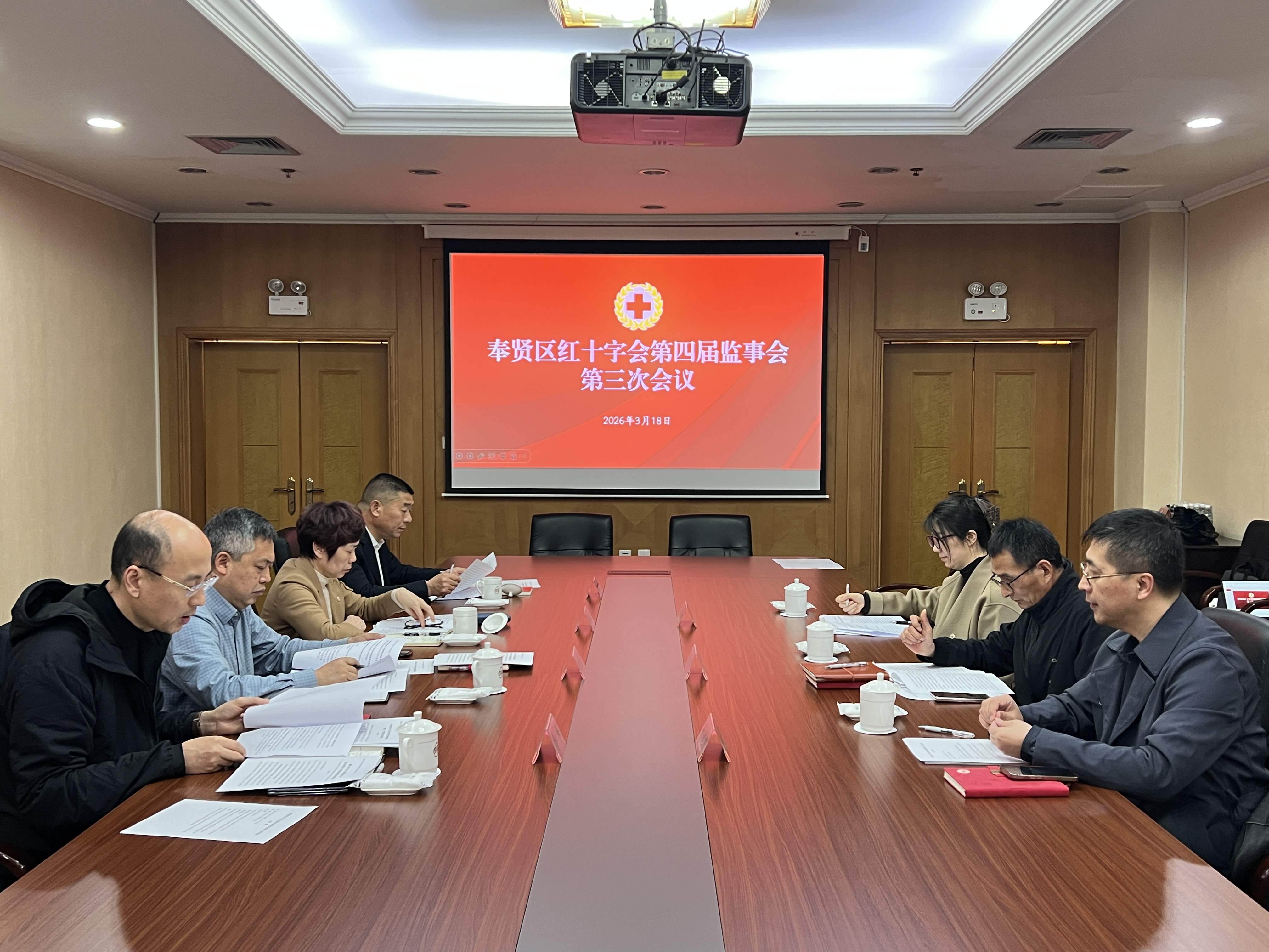 发布时间:2026-03-203月18日下午,奉贤区红十字会召开第四届监事会第三次会议,会议由监事长姚立军主持,全体监事参加。区红十字会党组书记、常务副会长陈秀华,党组成员、副会长程向阳列席会议。
