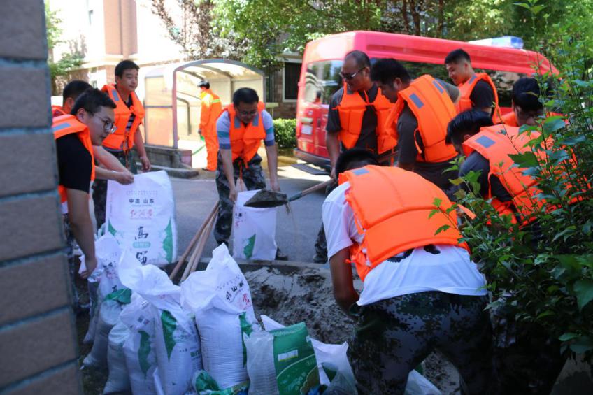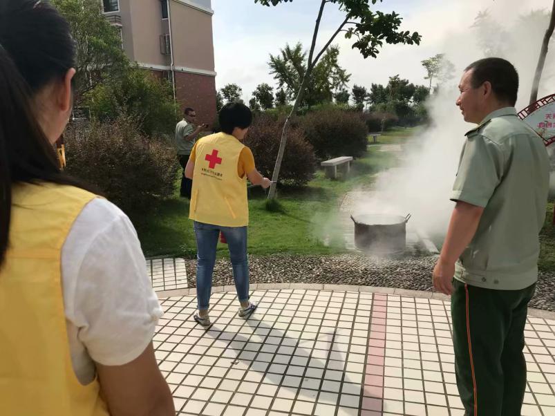 即将进入主汛期,在防汛演练过程中,红十字志愿者加入小区组建应急抢险队伍,各应急救援人员尽职尽责、协调配合,抢险队员快速启动汽油泵抽水排涝,并用沙袋修筑起临时隔水墙,完成积水抢险工作。同时,及时对树木进行加固,并清除倒伏树木等,完成应急处置工作。