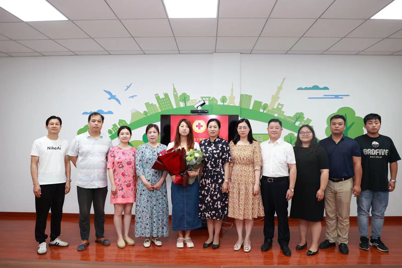区红十字会党组成员、副会长王燕为王慧妮颁发市、区红十字会的荣誉证书及奖牌、奖杯