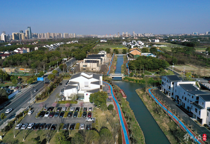 近年奉贤区探索面向市场探寻乡村振兴之道,在南桥镇,紧贴主城区的六墩村走出一条产城融合的乡村振兴之路:昔日的老旧宅基,摇身一变成为了企业总部,实现产业兴旺和生态宜居结合。白墙黛瓦与小桥流水交相辉映,独具匠心的建筑和周边广袤乡野风景相融合,辅之以优渥的政策,让这片村级商务楼吸引来不少企业入驻。