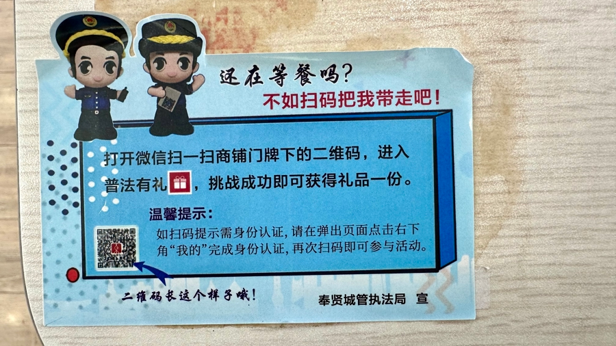 “以前也想在店铺外支小桌子、放个立牌,吸引客人进来,不过听说要罚款,加上也不知道要找谁申请,便一直不敢放出来。今年4月装上智慧门牌后,扫码申报外摆,很快就获得批准,为我们增加了不少客流。”店长黄安娜告诉新民晚报记者。