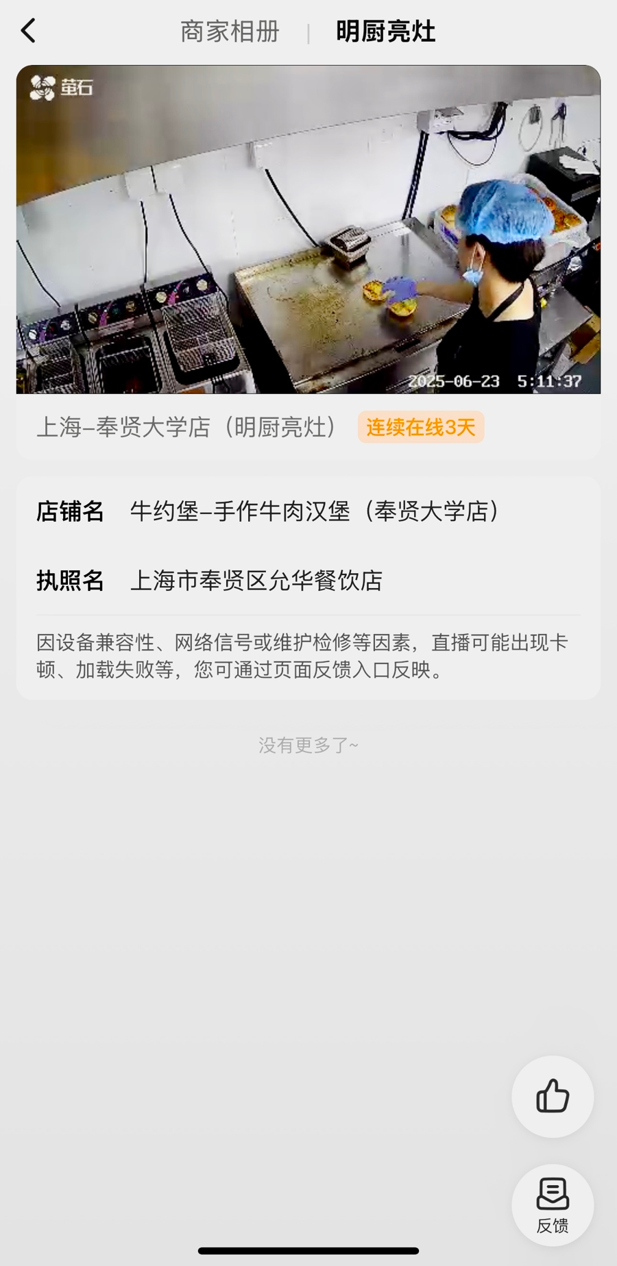而在奉浦街道的韩村路美食街上,“多多米线”门外也已换上了这块带有商铺码的门牌。扫码之后,在“明厨亮灶”一栏中,这家小吃店的后厨影像实时展现在新民晚报记者眼前——从食材清洗、切配加工,到烹饪制作、餐具消毒,所有环节卫生情况如何、操作是否规范,通通一目了然。