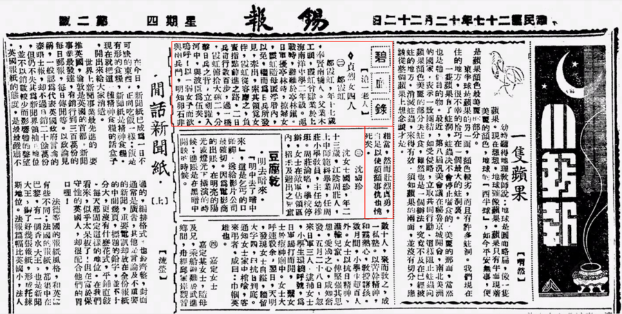 1938年12月22日《锡报》的《碧血录》专栏映入眼帘——“邹霞虹,年十七岁,奉贤南桥人……”报道中清晰记载的时间、地点与老人口述完全吻合,那个宁死不屈的女学生形象瞬间鲜活起来。