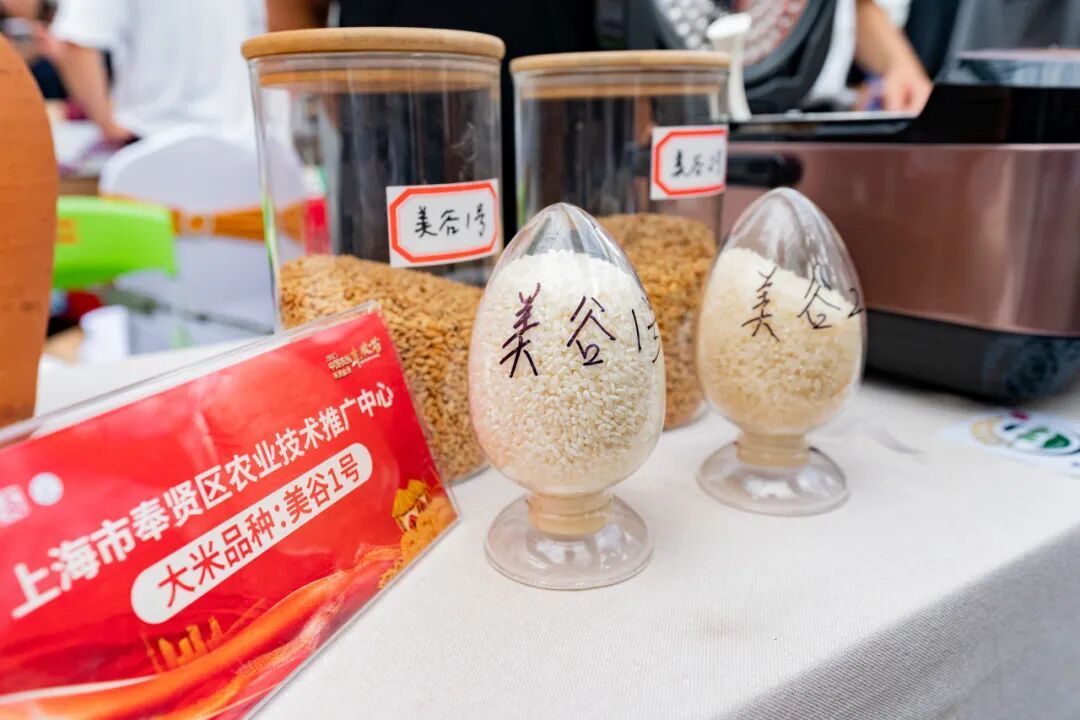 在优质大米品鉴区域,来自奉贤区的9家水稻生产经营主体带来了各自生产的优质大米。洁白软糯的新米饭香味扑鼻,引得市民争相品鉴。值得一提的是,现场,奉贤区自主培育的早熟稻品种“美谷1号”烹煮后米粒晶莹、米香浓郁、口感软糯弹滑,更绝的是即使是冷饭也不会硬,完美诠释了“上海好大米”的香软滋味。据介绍,“美谷1号”比中晚熟稻提前约一个月,实现了错峰上市,能让市民更早品尝到新鲜的秋日香甜。