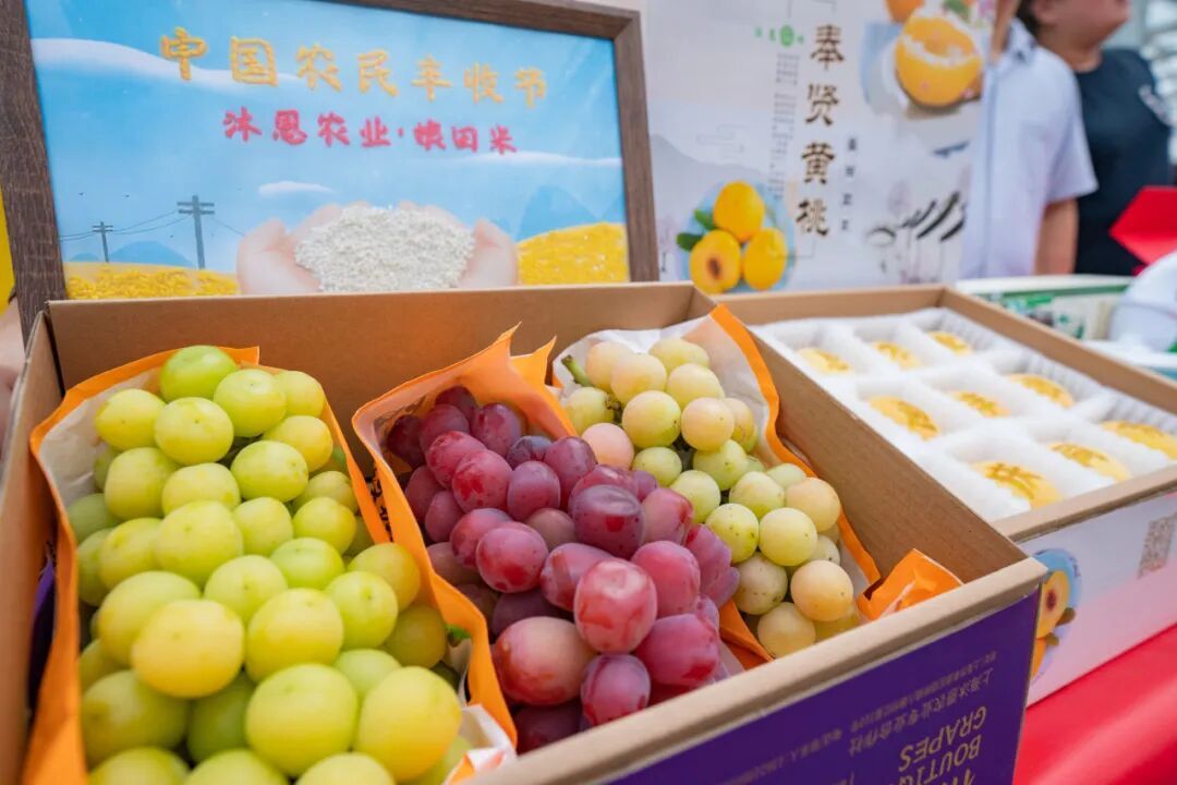 奉贤南瓜、黄桃汽水、紫甜糯玉米、雉鸡蛋、灵芝茶、桑黄片、虫草、藜麦蝴蝶酥、百合粉……在丰收成果展示区,来自奉贤区各街镇和市农科院的时令蔬果、地产特色农产品、加工衍生品等集中亮相,为市民带来了新鲜优质、耳目一新的乡村振兴成果展示,在“品质升级”中感受丰收的味道。