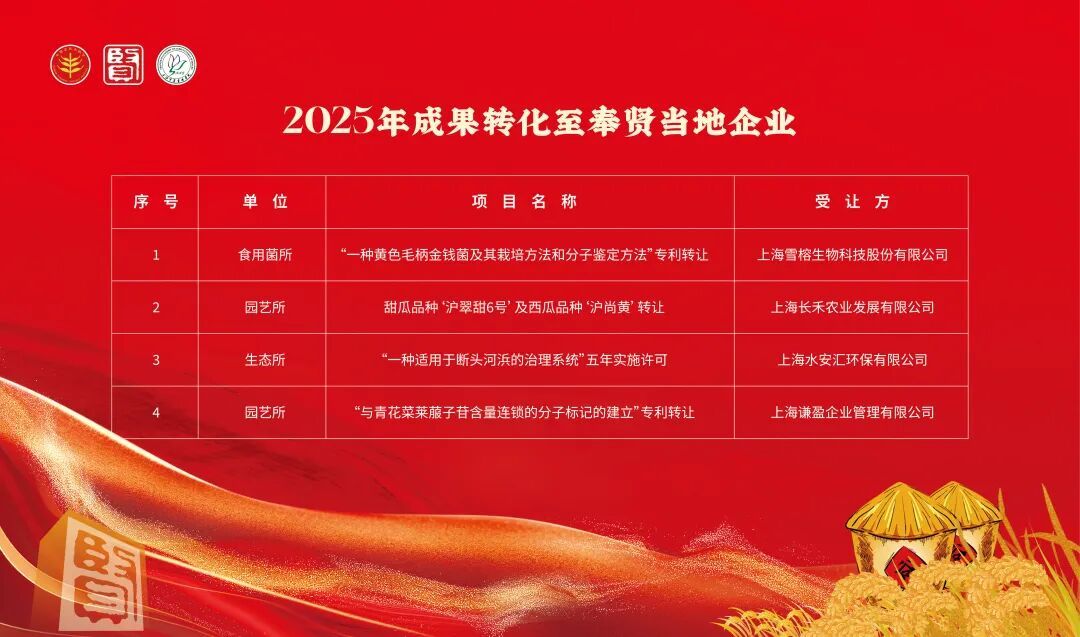 作为上海农业科技创新的主力军,市农科院始终坚持以科技赋能农业、以创新驱动发展,扎实推进科技成果转化与推广应用,全力服务上海现代农业建设。活动现场,市农科院与奉贤当地企业进行了科技成果转化的落地签约。