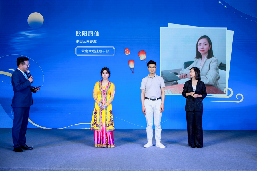 在“此时”故事汇环节,三位因工作、学业无法返乡的“新奉贤人”走上舞台,分享了来自山东、新疆、云南的中秋习俗以及在上海生活的温暖点滴,朴实的话语中饱含着对团圆的期盼与对“第二故乡”的深情。