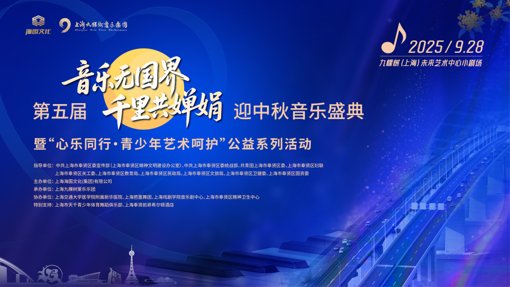 发布时间:2025-09-289月28日,一场跨界融合的音乐盛宴——第五届“音乐无国界·千里共婵娟”迎中秋音乐盛典暨“心乐同行·青少年艺术呵护”公益音乐会,将在九棵树(上海)未来艺术中心实验剧场奏响。本届公益音乐会由上海海国文化(集团)有限公司主办,国际指挥大师、乐团艺术总监汤沐海偕上海九棵树爱乐乐团中外音乐家和社会各界艺术家共同呈现。在延续了往届的国际视野、艺术性特点与“迎中秋”的传统主题基础上,本届音乐会进一步强化了社会公益性,特别聚焦青少年健康成长领域。将以音符为纽带,跨越地域与文化的边界,融汇传统与现代、民族与西洋,共同演绎一场关于和谐与共融的深情对话。