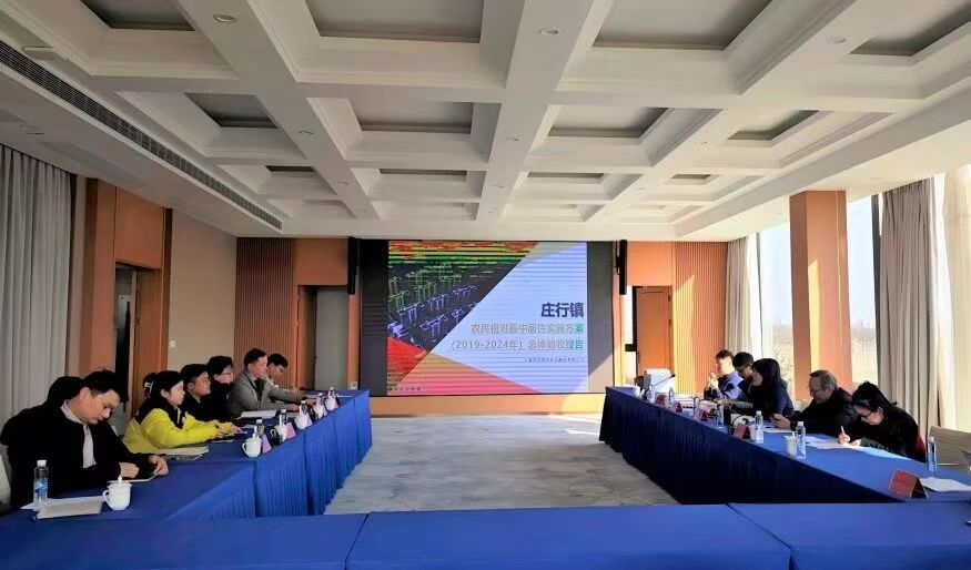 调研会上,庄行镇汇报了《奉贤区庄行镇农民相对集中居住实施方案(2019-2024)验收报告》。