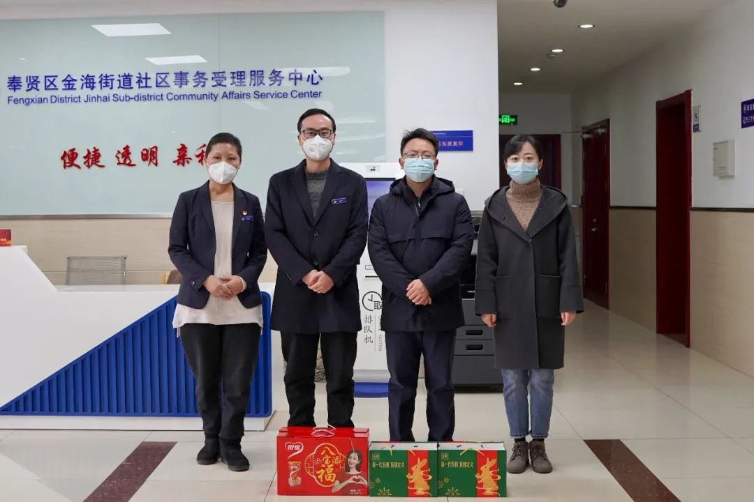 在金海街道社区事务受理服务中心,朱崇江为坚守岗位的一线工作人员送去新春祝福和慰问品,并对大家春节期间舍小家、为大家,保障群众生活安定有序表示衷心感谢。