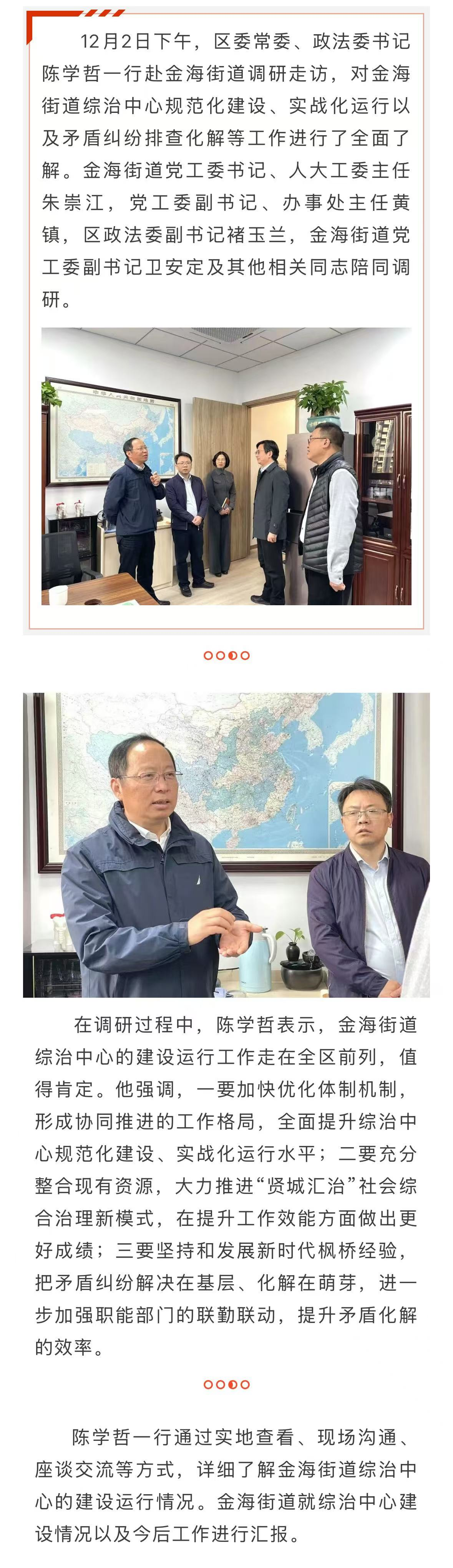 区委常委、政法委书记陈学哲一行赴金海街道调研走访