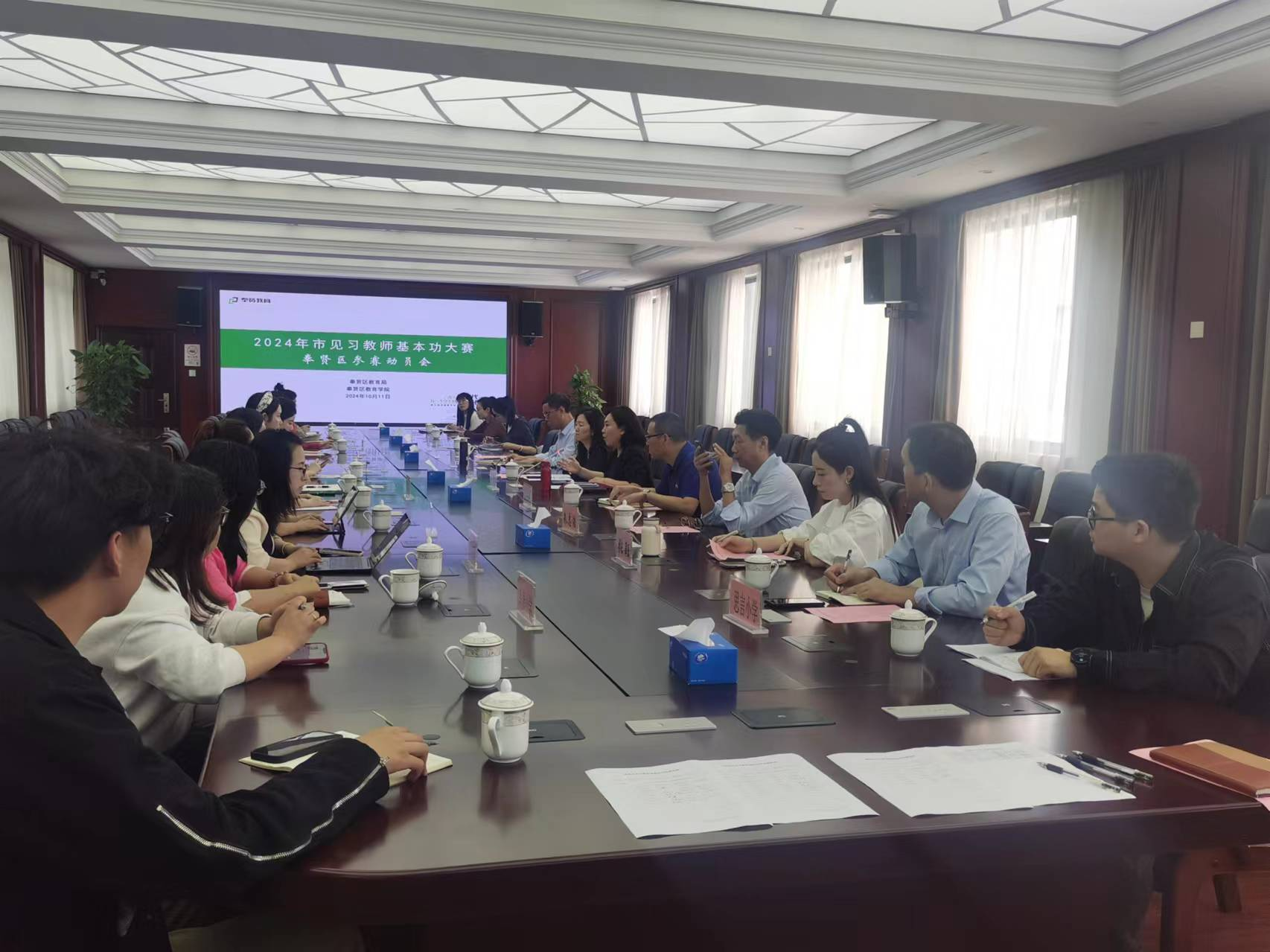 近日,2024年上海市见习教师基本功大赛奉贤区参赛动员会举行。区教育工作党委委员、区教育局副局长许琼,区教育学院副院长王静出席会议。
