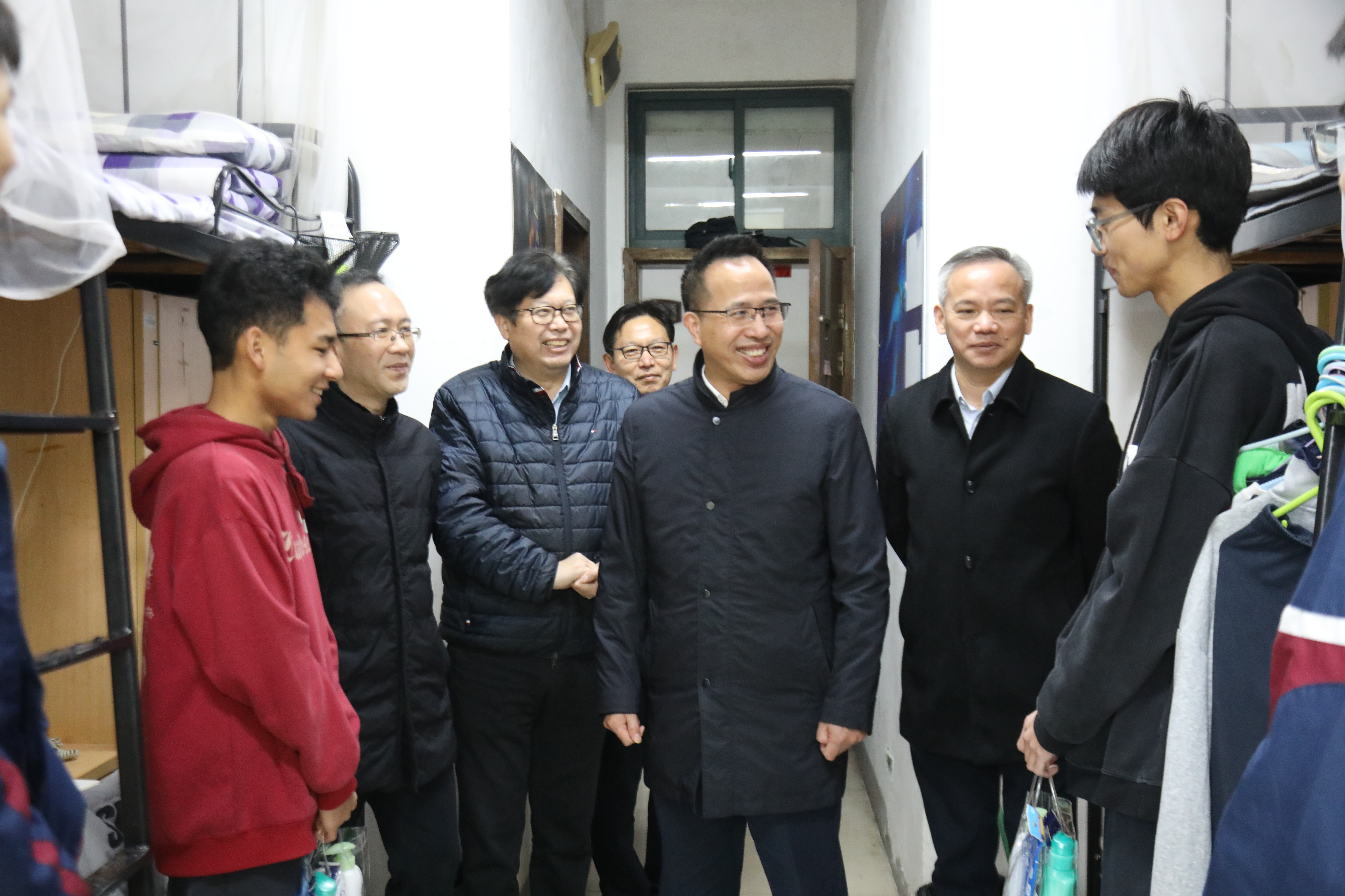 唐晓腾一行走进新疆班学生宿舍,与学生们亲切交谈,了解他们在校学习与生活状况,并激励学子们珍惜在校的学习时光,要怀有对党和国家的感恩之情,精进学业知识和专业技能,成为能工巧匠,投身到祖国家乡的火热建设中。他关照每位学生要兼顾好个人生活与工作学习,希望每位学生能在校园内度过一个温馨愉悦的新春佳节,并为他们送上新春慰问品。同时,他仔细询问学校相关人员,详细了解了新疆部的春节安排、人员配置、安全保障等情况,关心新疆派驻老师在上海工作生活的情况,感谢他们远离家乡和家人在奉贤持续关爱新疆部的孩子们,并为他们送上新春祝福。