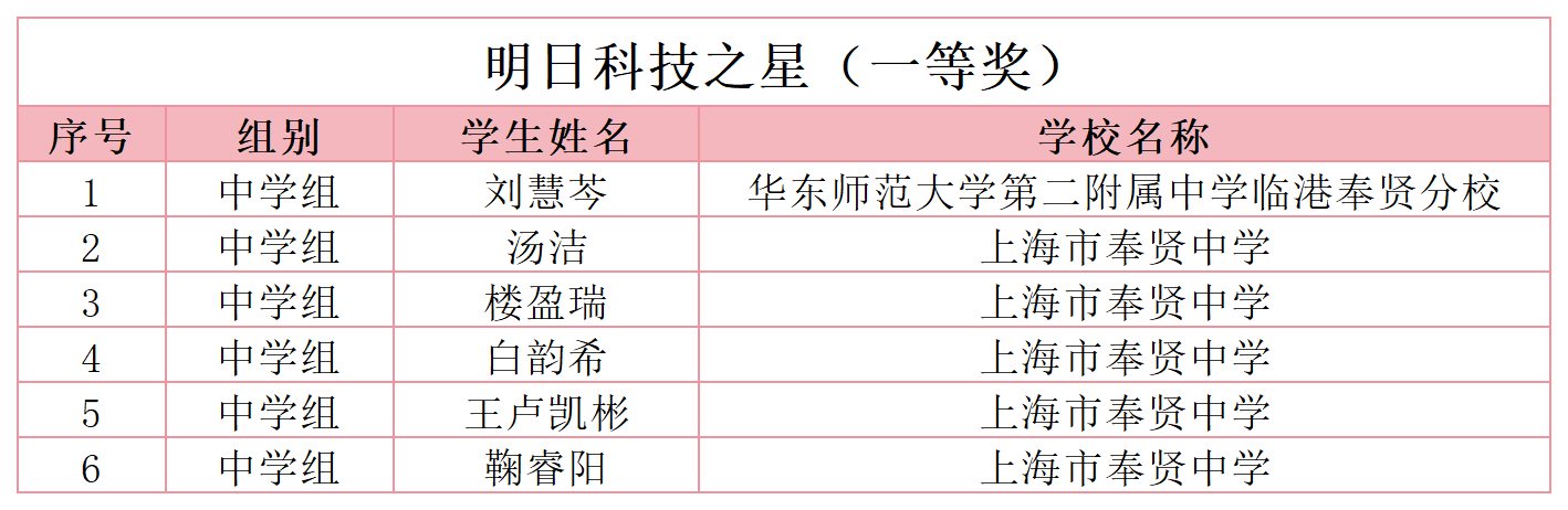 6名奉贤学子荣获市青少年“明日科技之星”