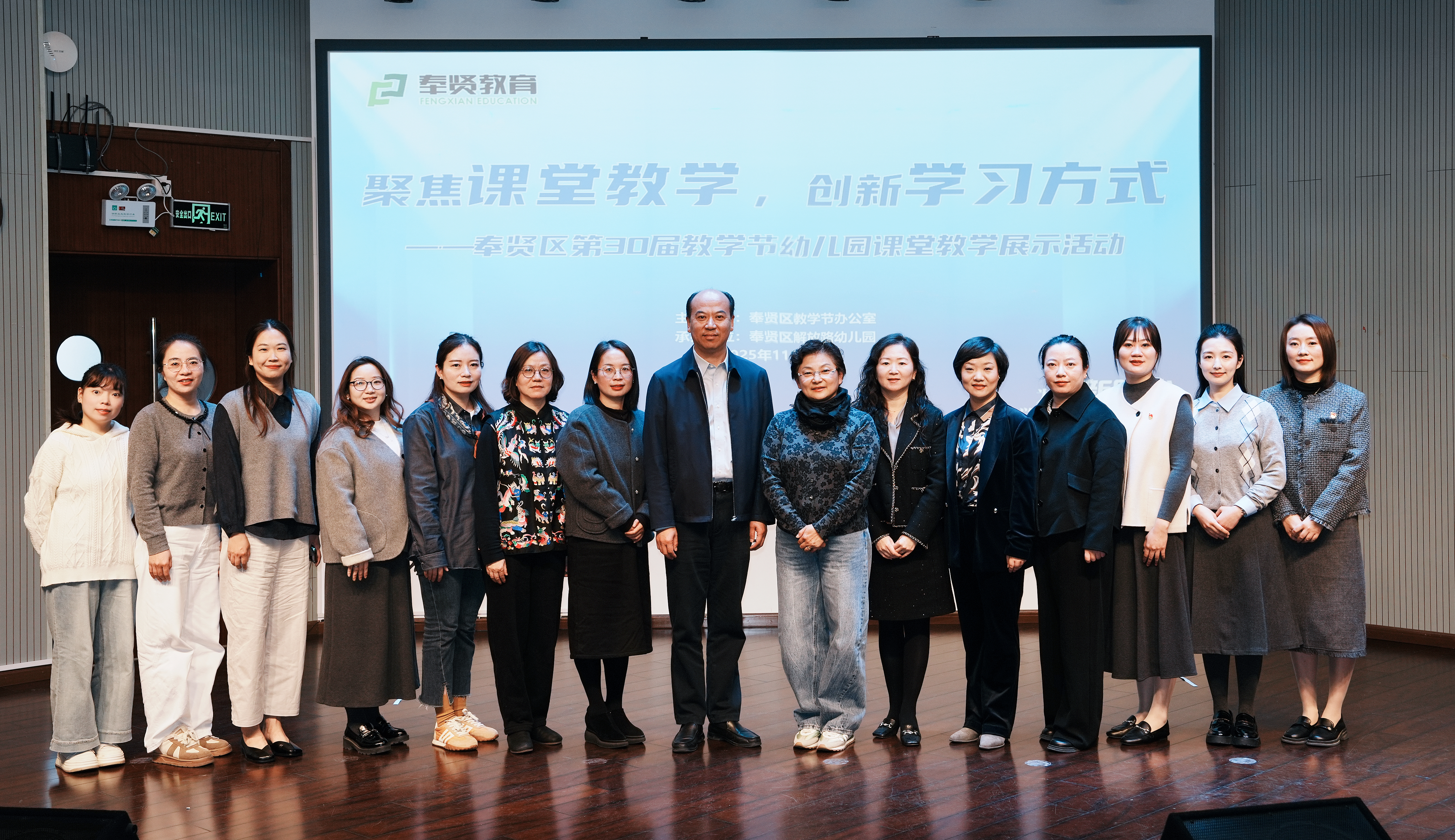 11月25日,主题为“聚焦课堂教学,创新学习方式”的奉贤区第30届教学节幼儿园课堂教学展示活动在解放路幼儿园(中粮部)举行。区教育局副局长许琼,区教育学院党总支书记蒋东标、院长周英、副院长王静出席活动。活动特别邀请了上海市特级园长、正高级教师、黄浦区奥林幼儿园园长张颖作点评指导。