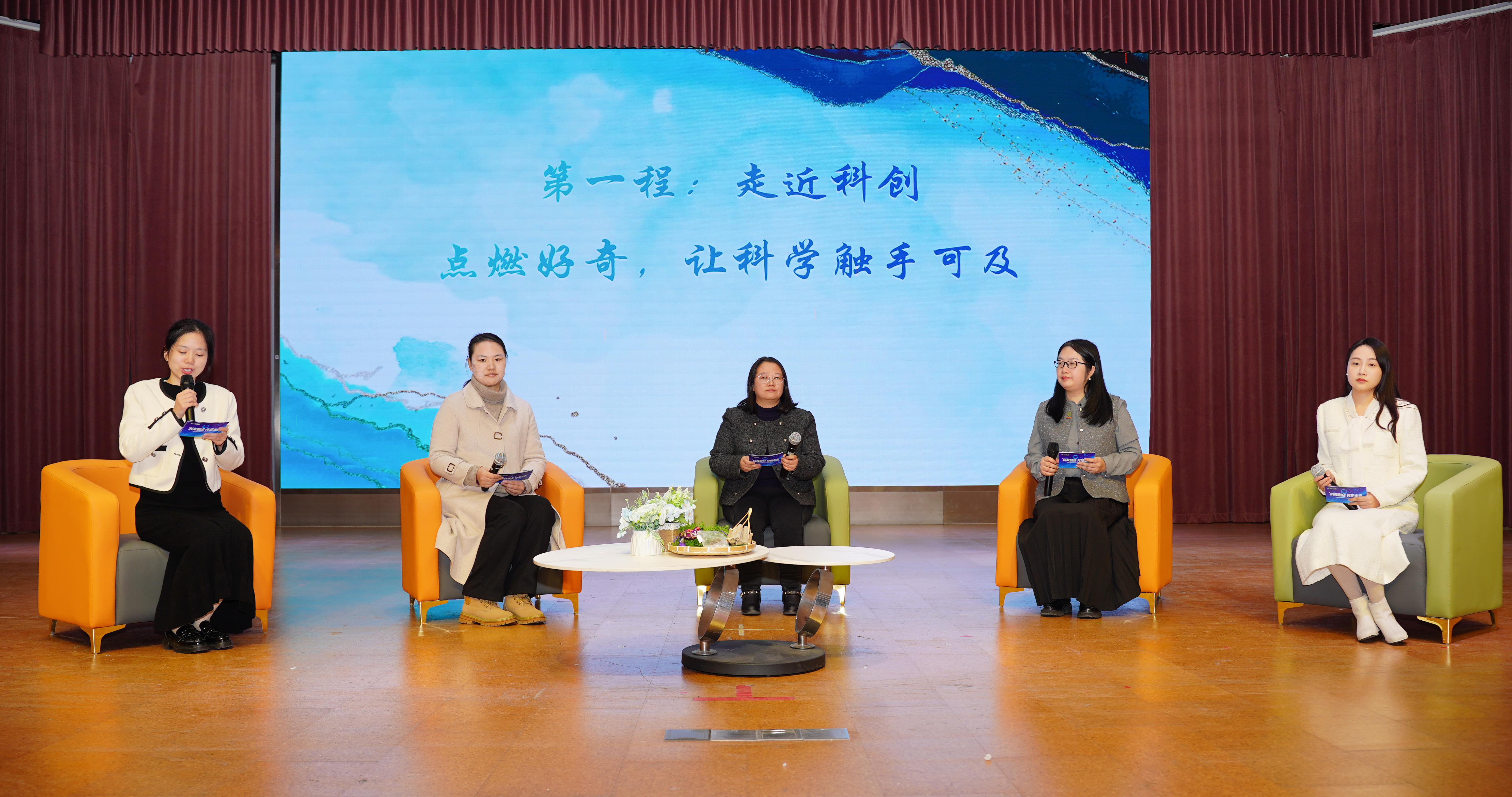 来自四个学段的教师代表——奉贤中学华丽、平安学校周静、肖塘小学刘桑和金阳幼儿园宋佳,围绕“走近科创,点燃好奇”“走入科创,沉浸探究”“走出科创,内化素养”三个层次,深入探讨不同学段开展科创教育的实施路径与育人重点,共同勾勒出奉贤区一体化科创教育的全景图。