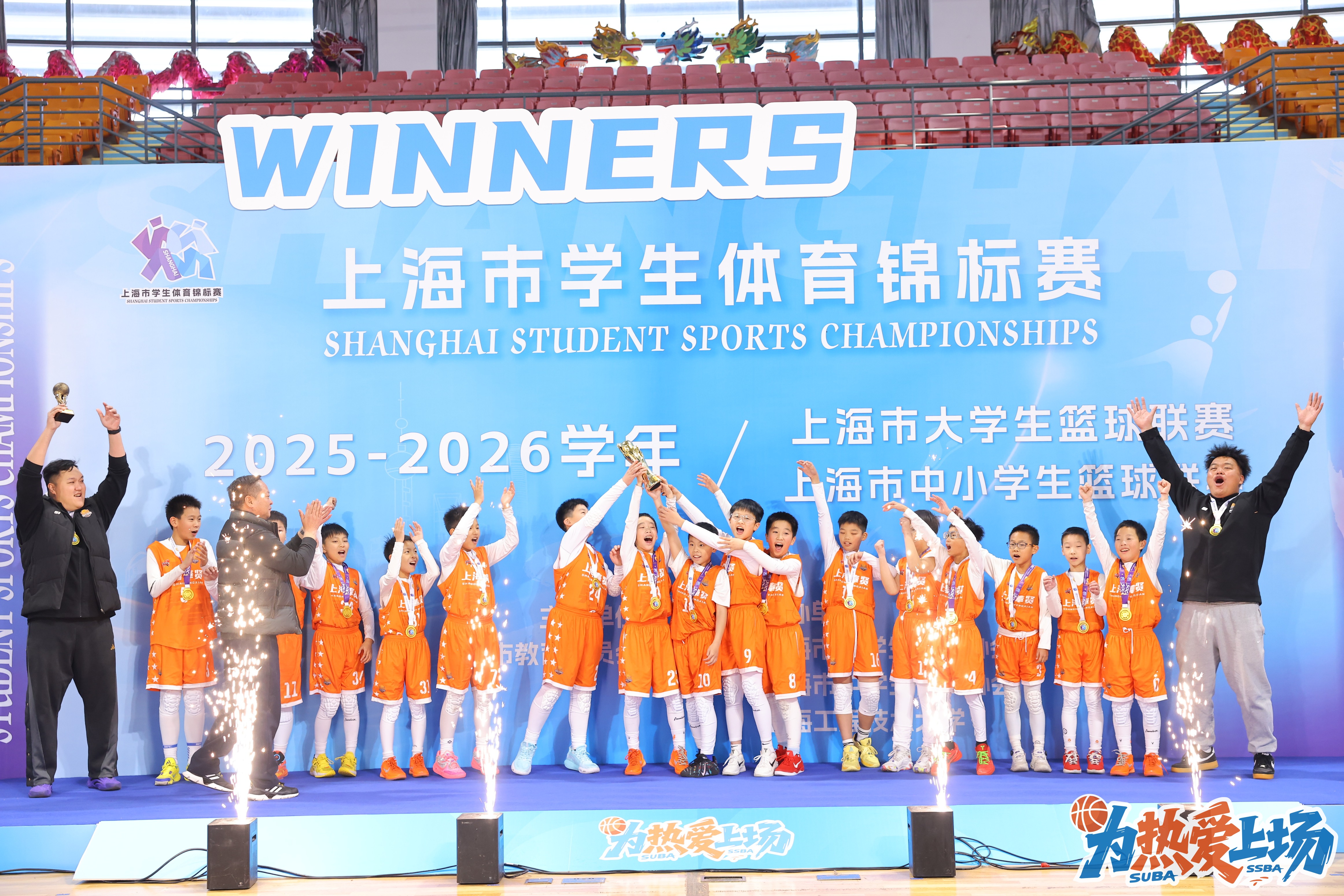 在刚刚落幕的2025-2026学年上海市中小学生篮球联赛小学男子组比赛中,由奉贤区校园篮球联盟精英队组建的区代表队奋勇拼搏,历经三个月激烈角逐,最终历史性夺得全市冠军,创造了最佳战绩!主教练徐胡佶荣获“最佳教练员”称号,队员陈慕哲荣获“最佳运动员”称号。