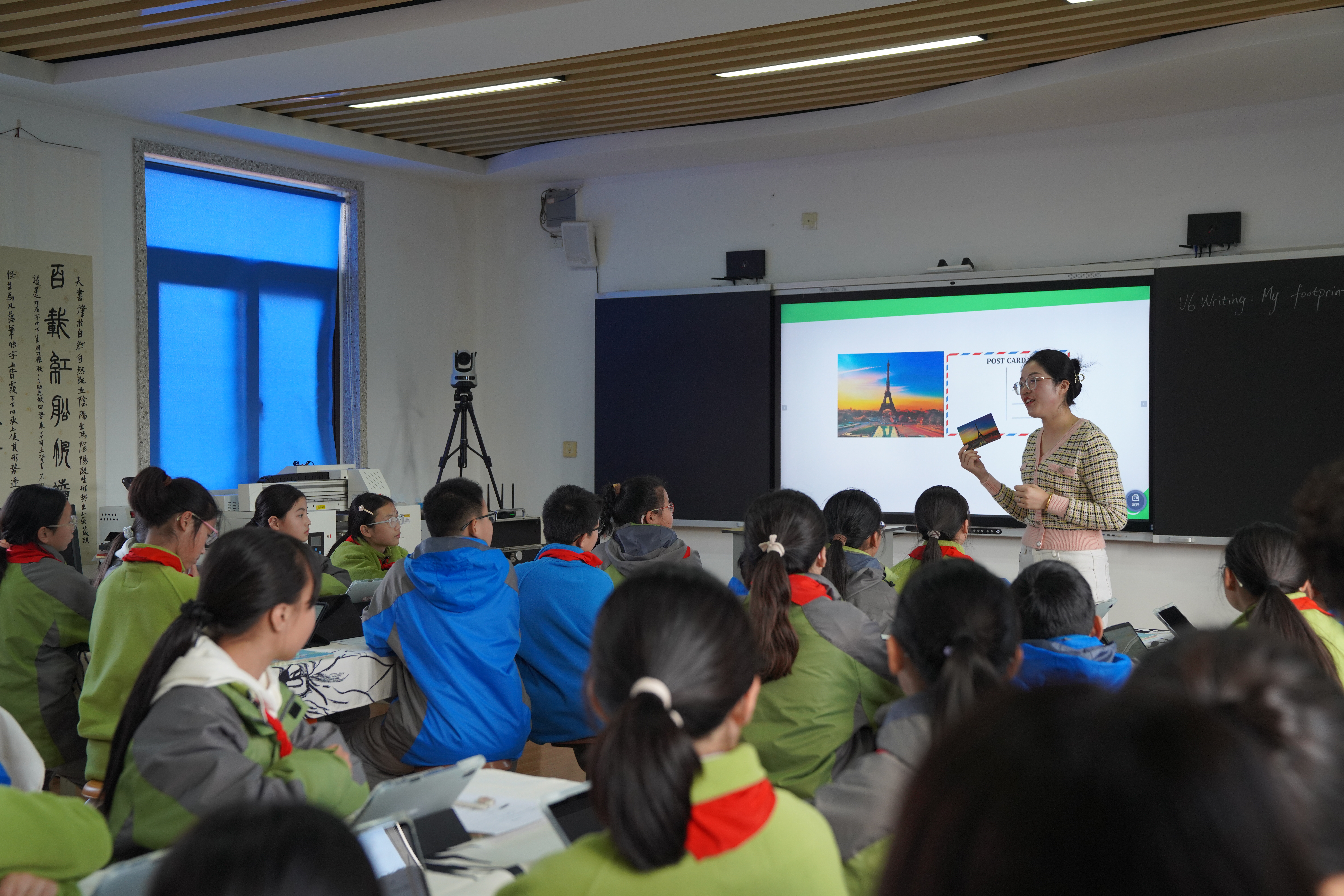 语文教师夏天执教《他们那时候多有趣啊》,她运用AI技术自动统计学生填写的表格数据,对学生朗读录音进行精准评分,使教学互动更加高效,反馈更具针对性。数学教师林欢执教《从传统连续纹样到现代镶嵌图案》,他利用“三个助手”互动工具,通过作品评分机制对小组创作成果进行评价,进一步增强了学生学习数学的自信心。在英语教师朱倩芸的《6A Unit6 Writing: My footprint》作文课中,AI技术深度赋能教学全过程,AI分析助手从内容、语言和结构三个维度即时提供个性化改进建议,精准实现因材施教。音乐教师张云怡在《聆听红旗旋律,创编时代新声》这节课中,借助AI助手直观解析"鱼咬尾"等创作技法,有效帮助学生快速掌握音乐知识、拓展红色旋律创作思路。