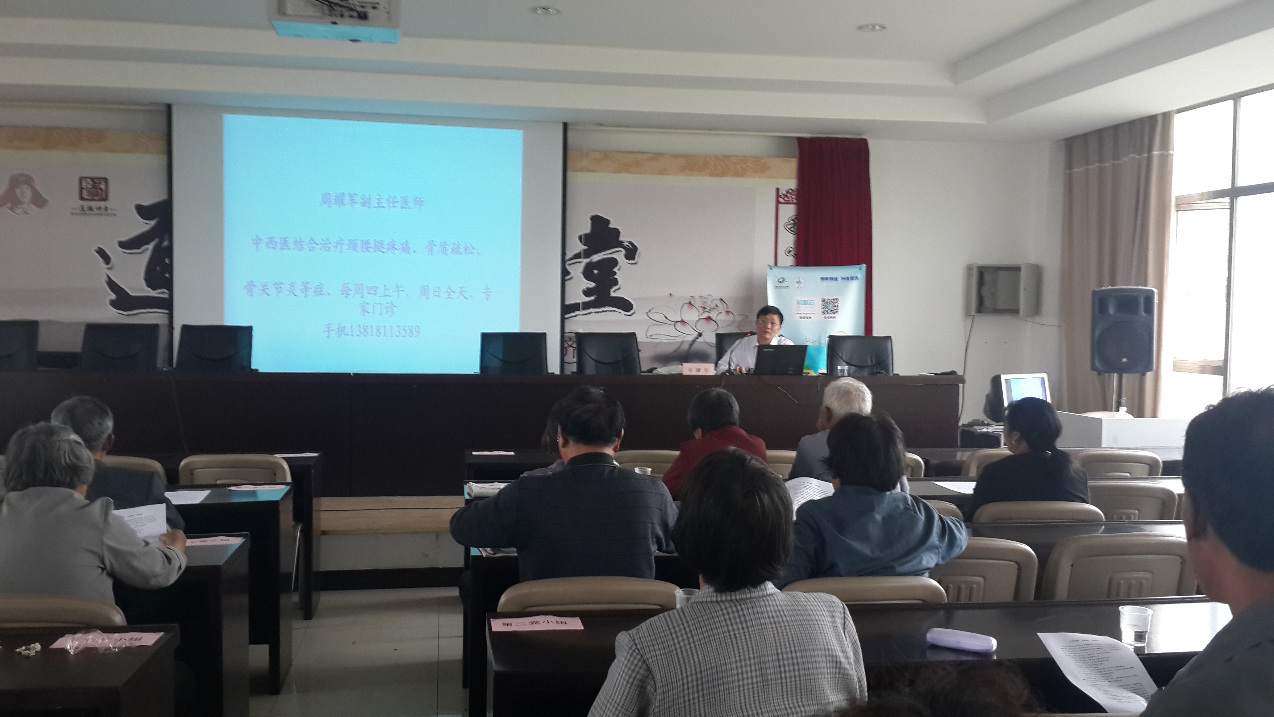 周医生围绕老年人感兴趣的骨质疏松症,以幻灯片的形式,用通俗易通的语言告诉老年人如何走出补钙的误区,怎样补钙才是最有效的。讲座结束后,提问的村民把周医生围个水泄不通,迫不及待的提问咨询,周医生结合自己多年的临床经验一一为村民解答。
