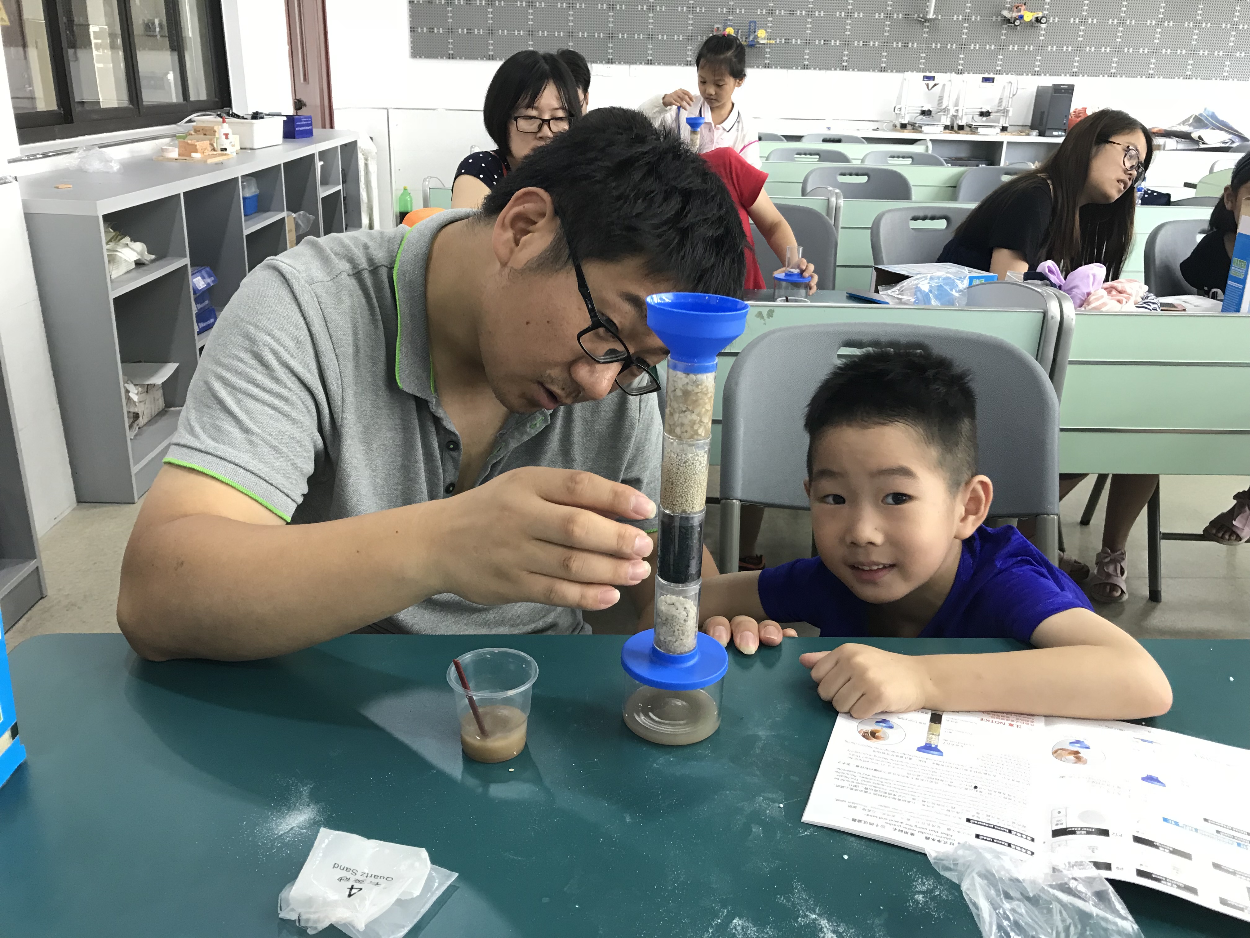 发布时间:2018-07-237月21日,奉贤区奉浦社区创新屋和庄行社区创新屋分别举办了欢乐暑期活动之“有趣的污水净化”活动。现场共迎来了32个小朋友参与了活动的体验。